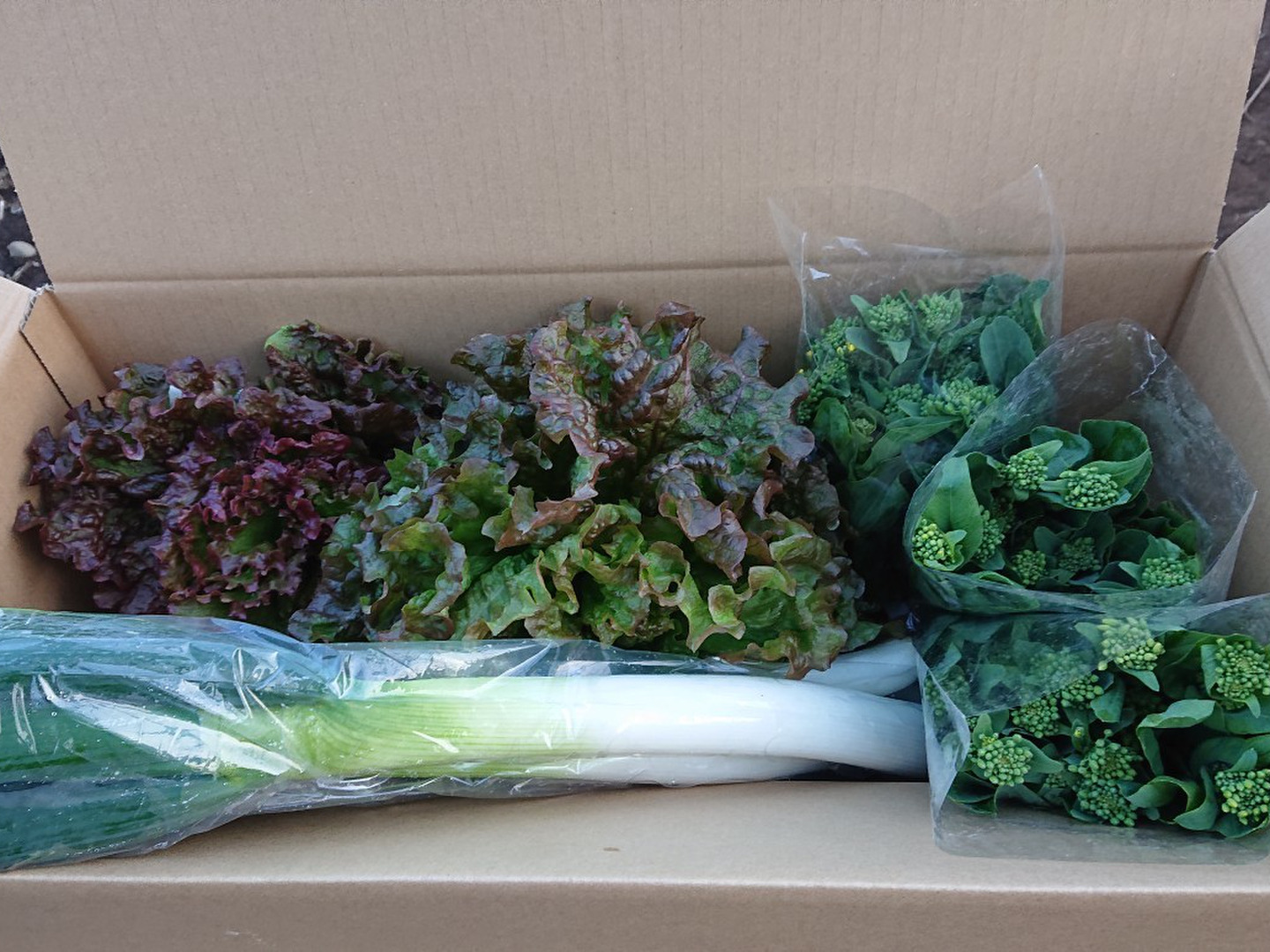 ・・・小松菜の菜花、長ねぎ、リーフレタスによる3種類6品の野菜セットです。
