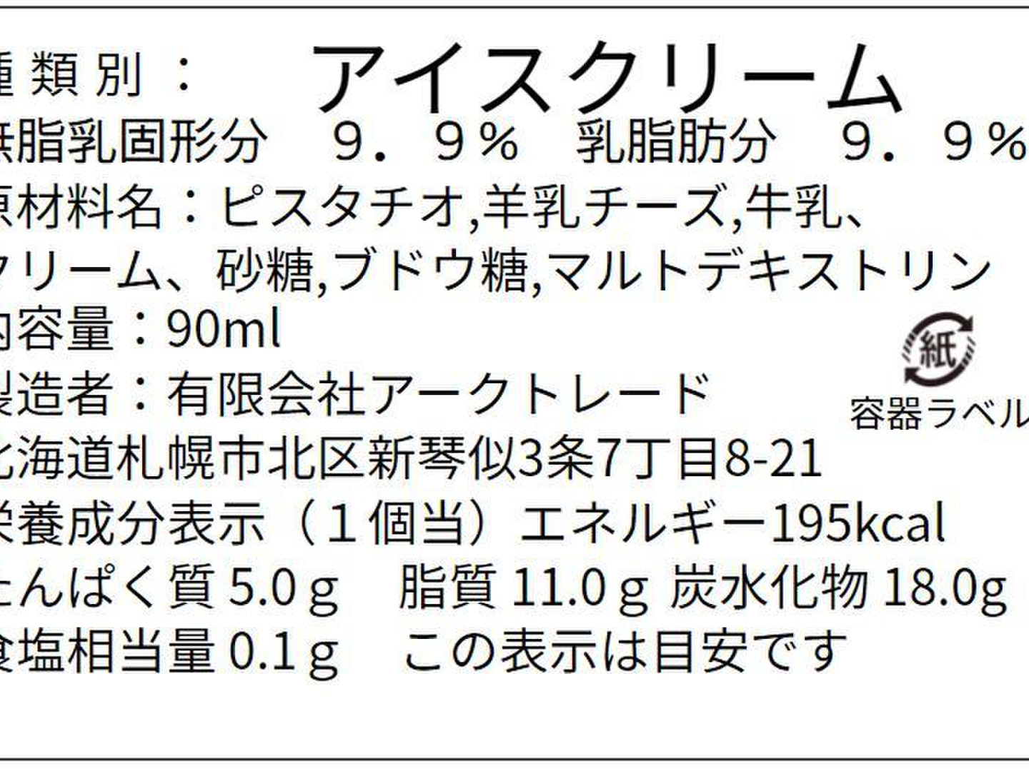 内容 ピスタチオと北海道産羊乳フロマージュブランのジェラート 95ml 6個入り
