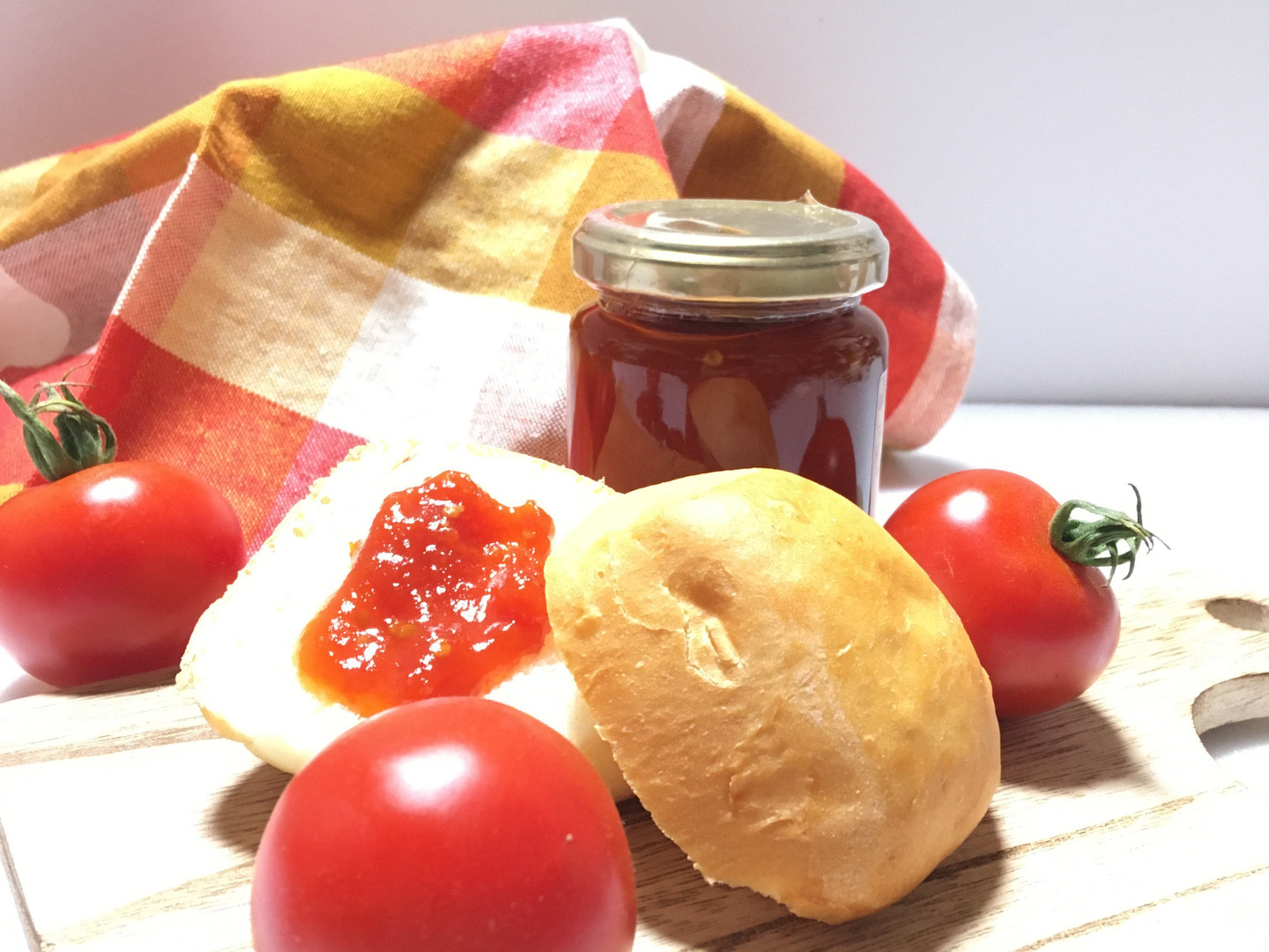 トマトジャムは酸味と甘さのバランスよいぜいたくトマト🄬で作っております