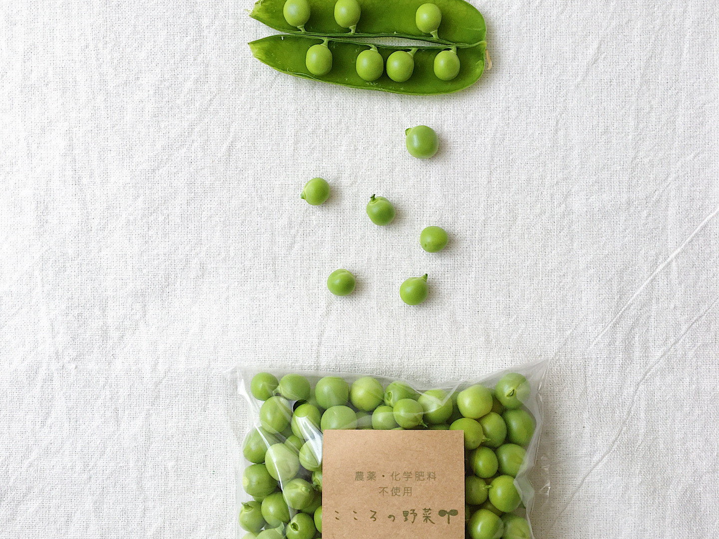 ミネラル豊富な畑で育った、甘味が強く瑞々しいグリーンピースです。