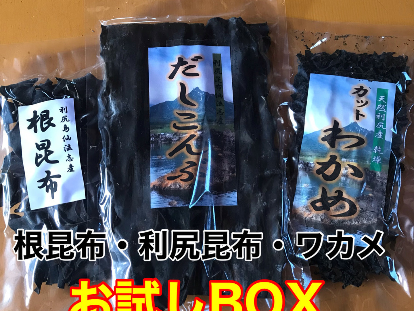 『お試しBOX』【実質送料無料】利尻島産出汁昆布・根昆布・わかめ 3点入り1セット