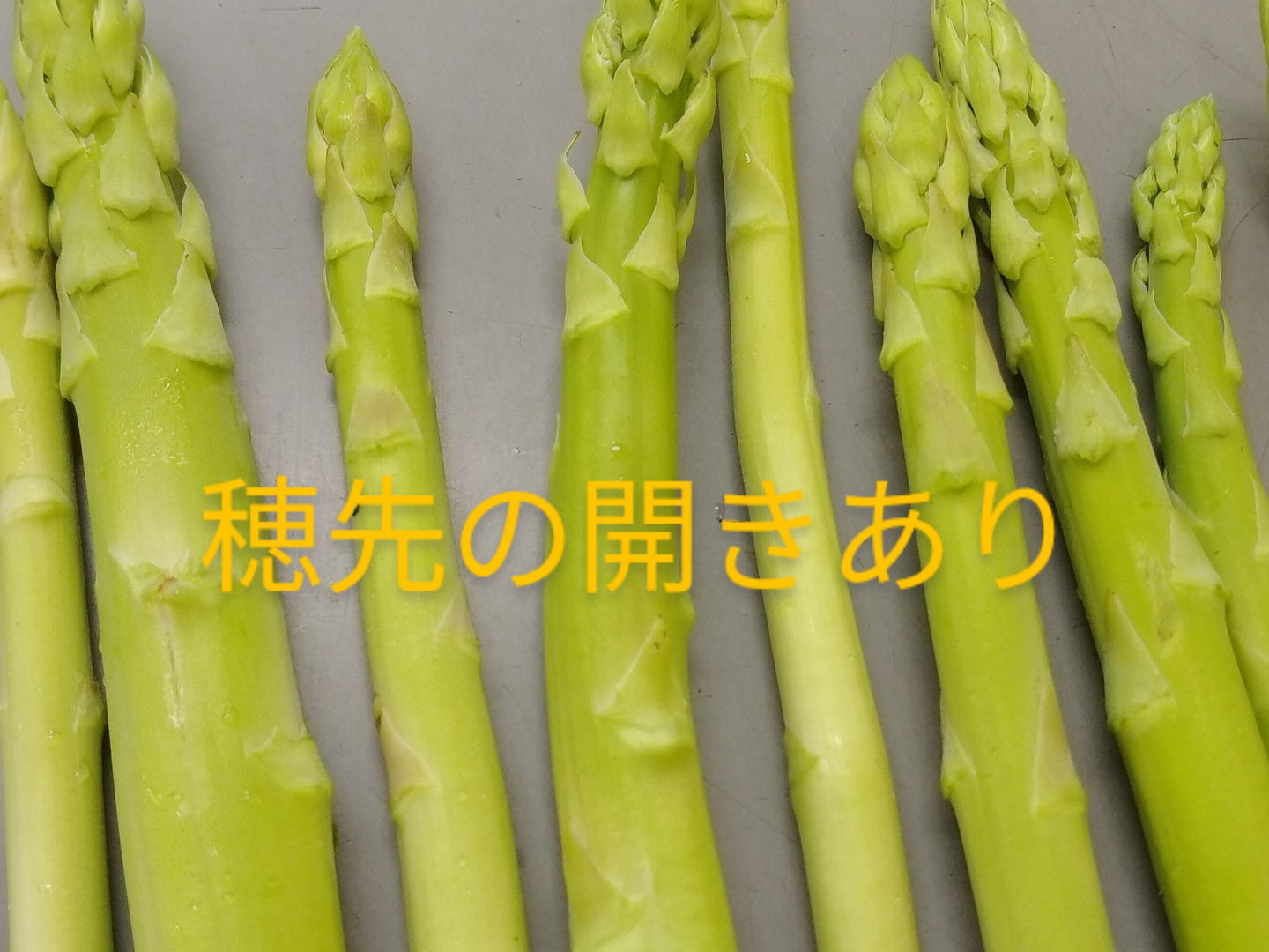 茎が曲がってしまったり、少し傷がついてしまったり、穂先が開いてしまったと出荷する商品としては規格外になってしまう訳ありグリーンアスパラガスです。