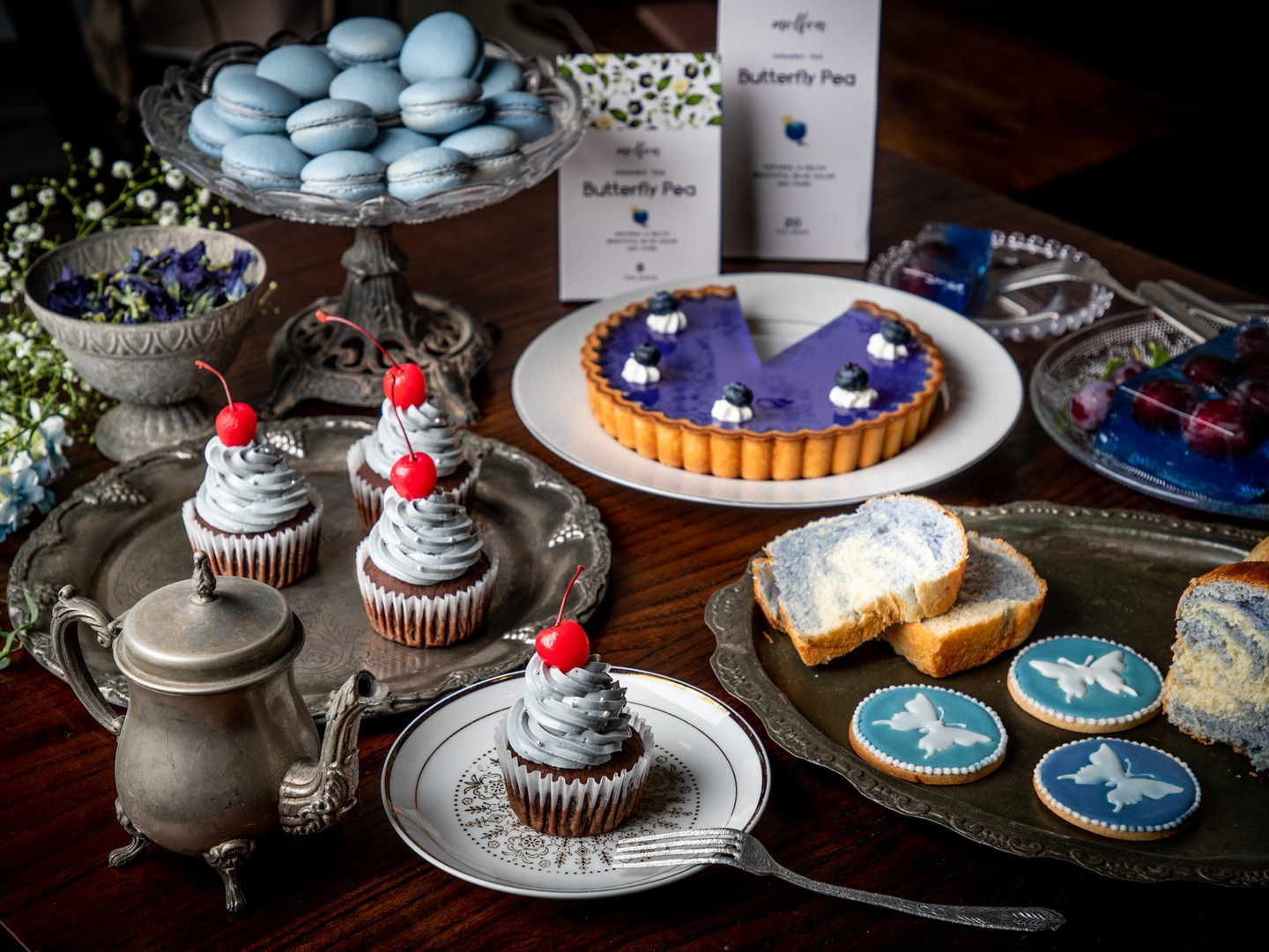 バタフライピーの花弁から抽出されるハーブティーは神秘的な蒼色をしています。