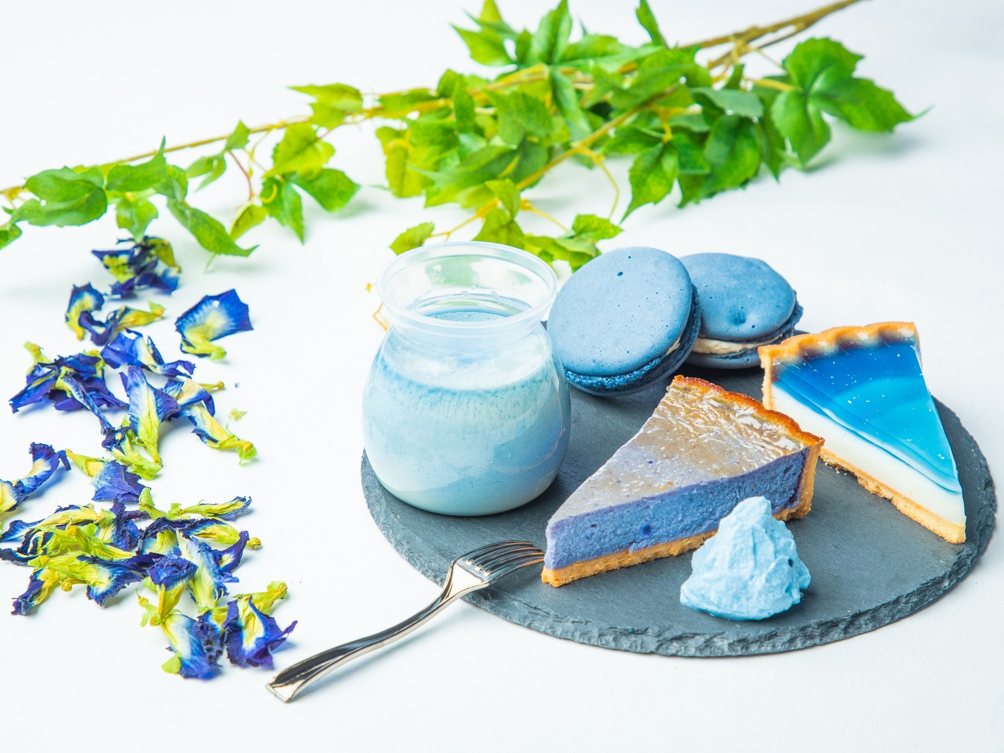 小麦粉や生クリームに混ぜて青いスイーツが手軽につくれるパウダー