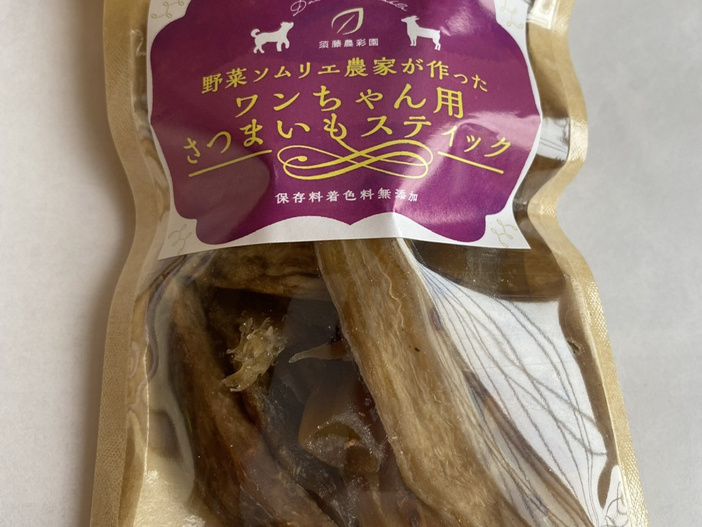 こんにちは。須藤農彩園です。標高600mのあぶくま高原で育てたさつま芋を使ったワンちゃん用おやつのご紹介です。