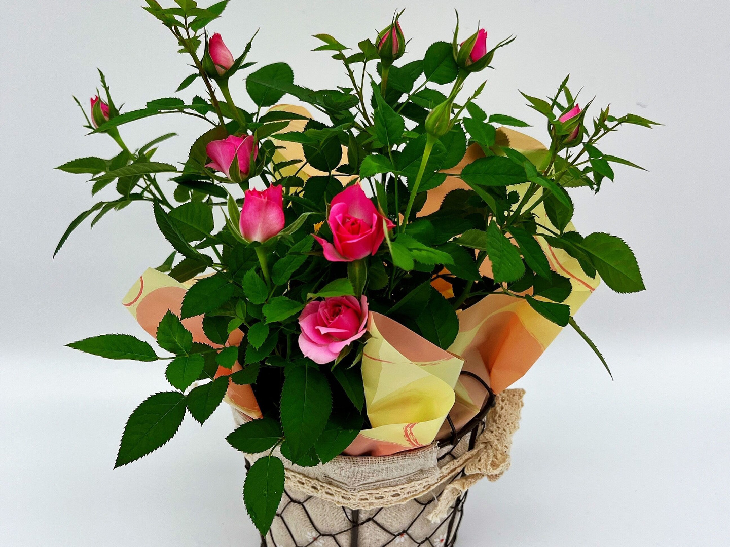 <商品概要> 母の日のピック付きの中輪形のコルダーナローズ1色が植えてあります。ギフトなどの贈り物にも最適です。