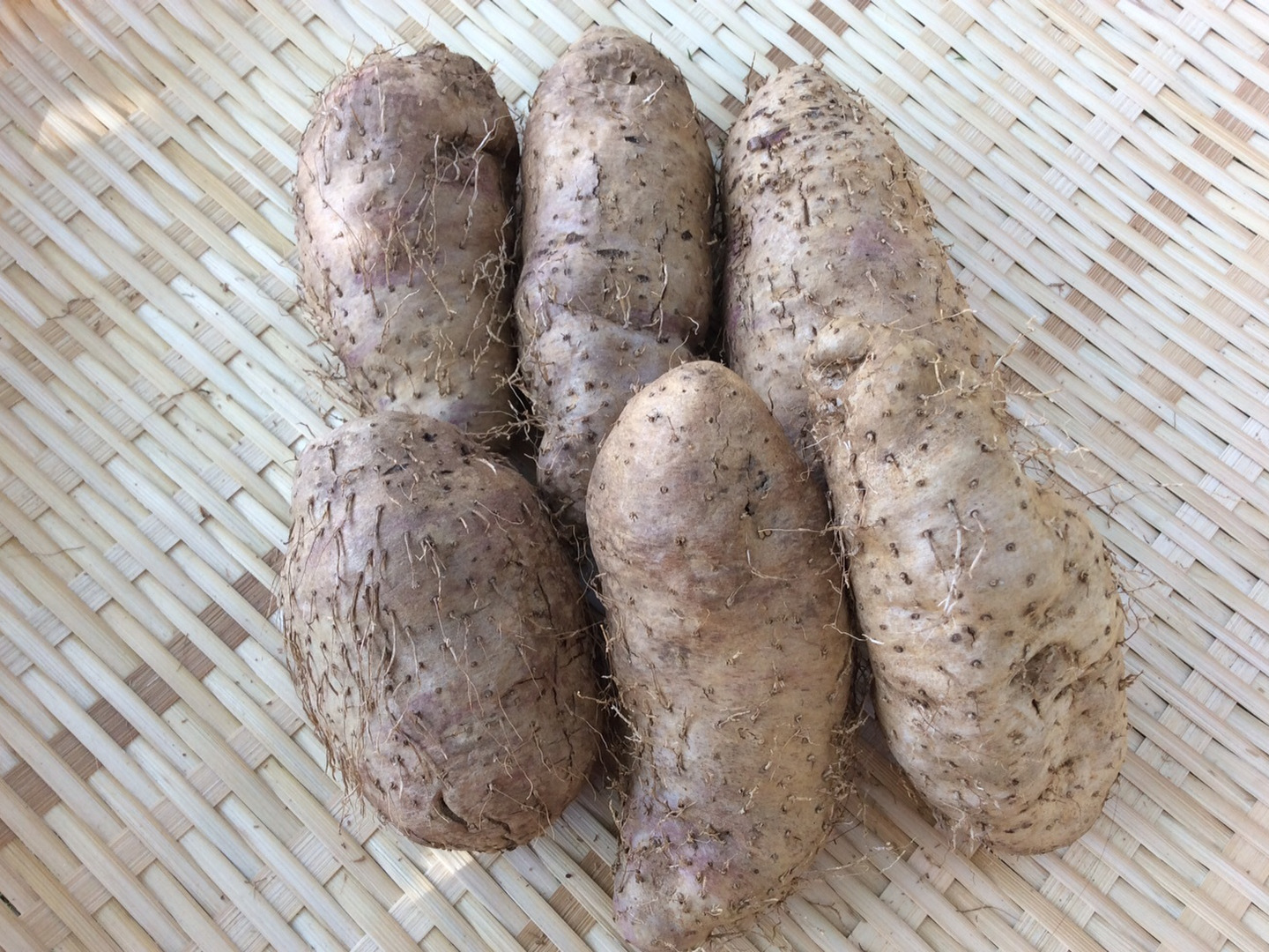 傷みが早く、今では、生産する農家が少ないため、あまり市場では見かけない芋です。