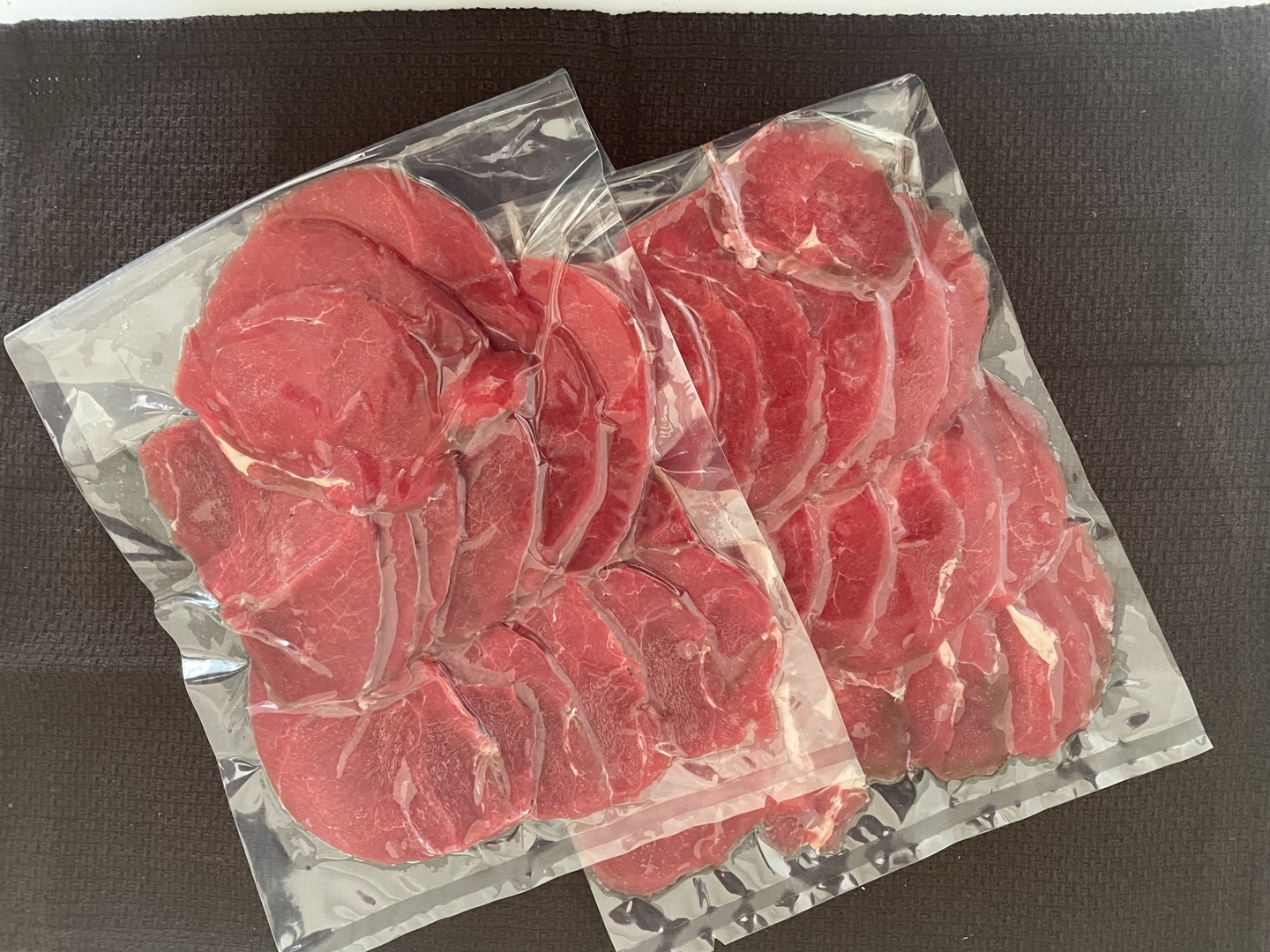 またこちらに鹿肉スライス250gパック×2つをセットにしました。