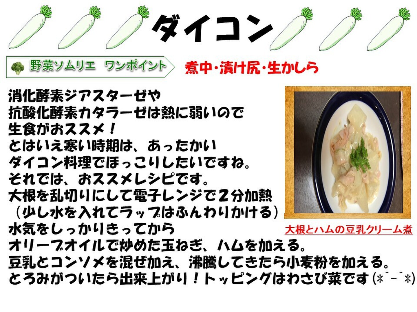 小カブ(スワン、あやめ雪)、わさび菜、ラディッシュ、ダイコン、ニシユタカ、ミニチンゲンサイ、ユズ、ブロッコリーなど