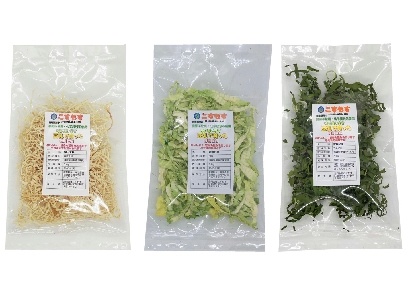 【便利です】豆乳で育った乾燥野菜3点セット 切干大根・乾燥白菜・乾燥ネギ(クリックポスト便)