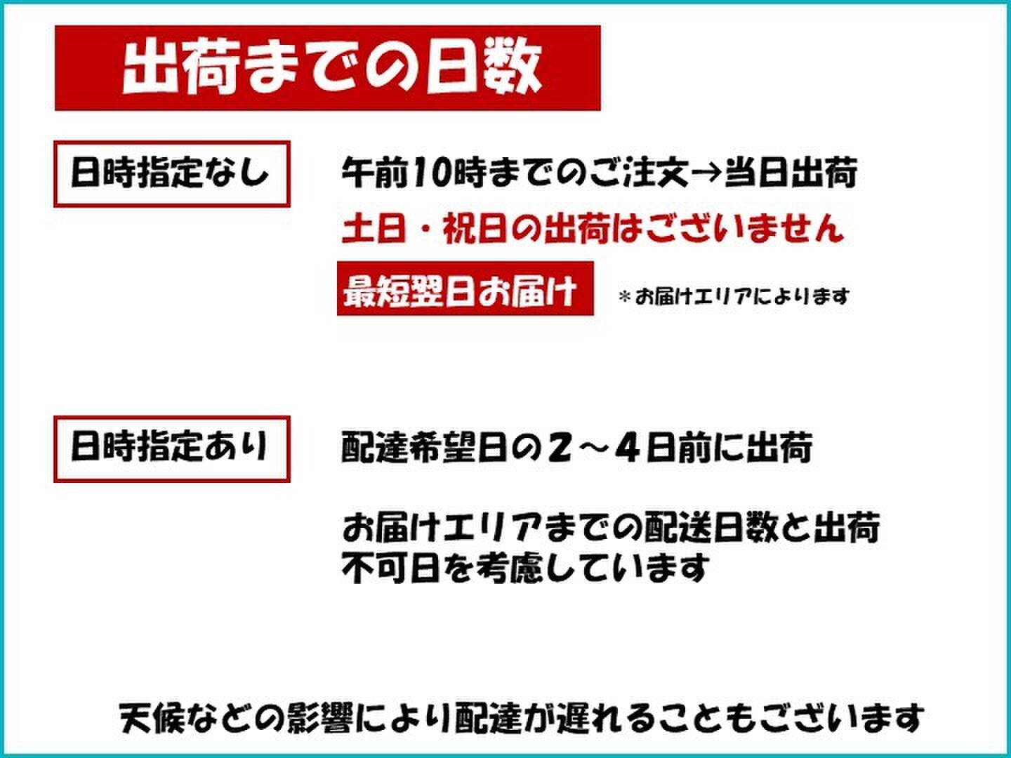 午前10時までにご注文・決済いただいた商品は当日発送いたします!
