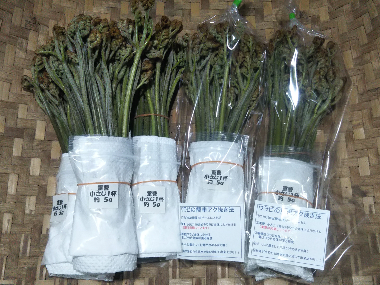 今期最終品 3セット限り ・わらびまとめ買い 4パック ・春一番採り「わらび」200gx④ ・あく抜きレシピと重曹付きで家庭でも簡単調理出来ます