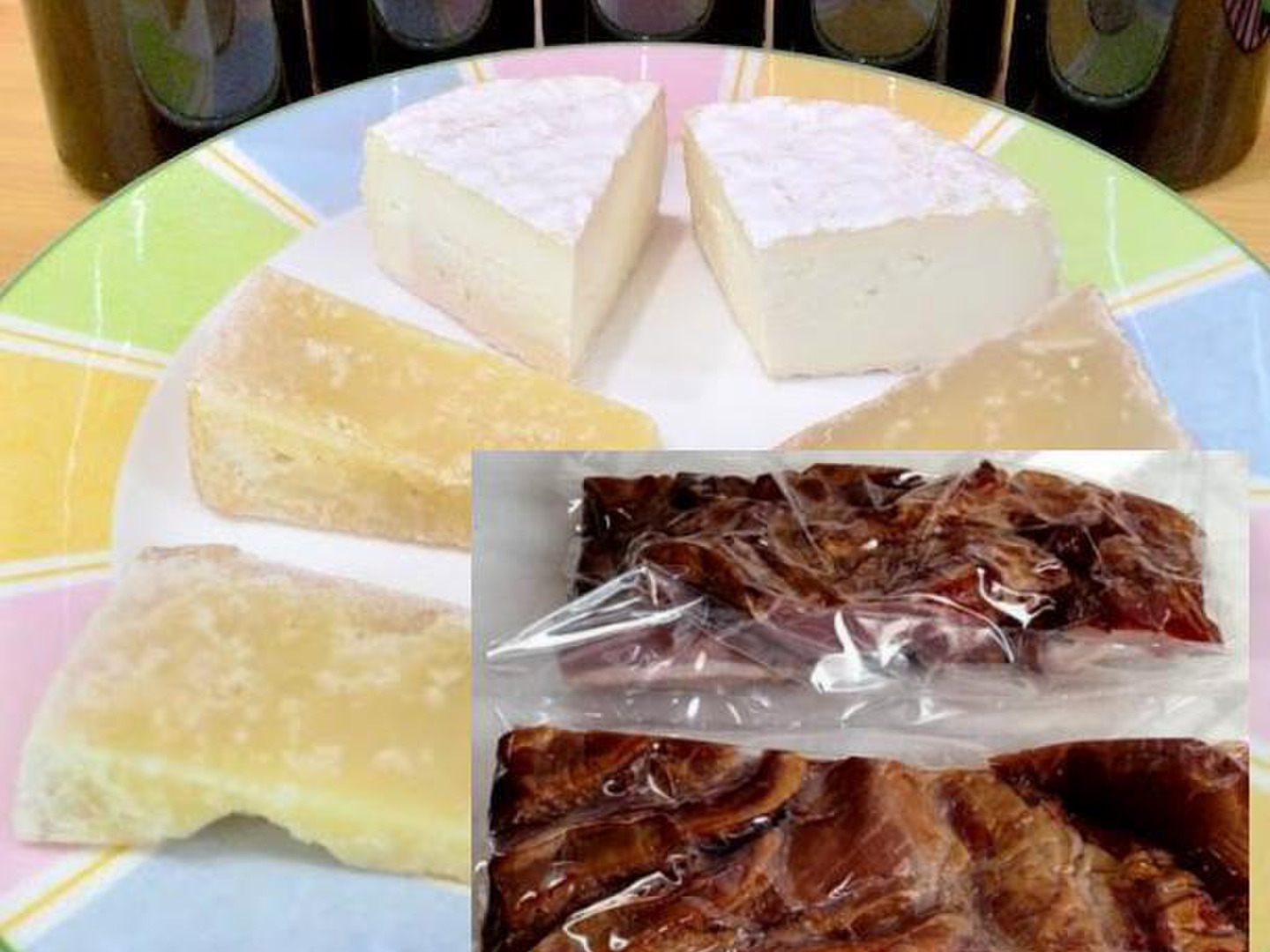 北海道産100%羊肉ベーコン(300g)と 羊乳チーズ(ペコリノイシカリーノ 約100g)、牛乳チーズ(石狩トム・石狩ブリー計約300g)の3点セット