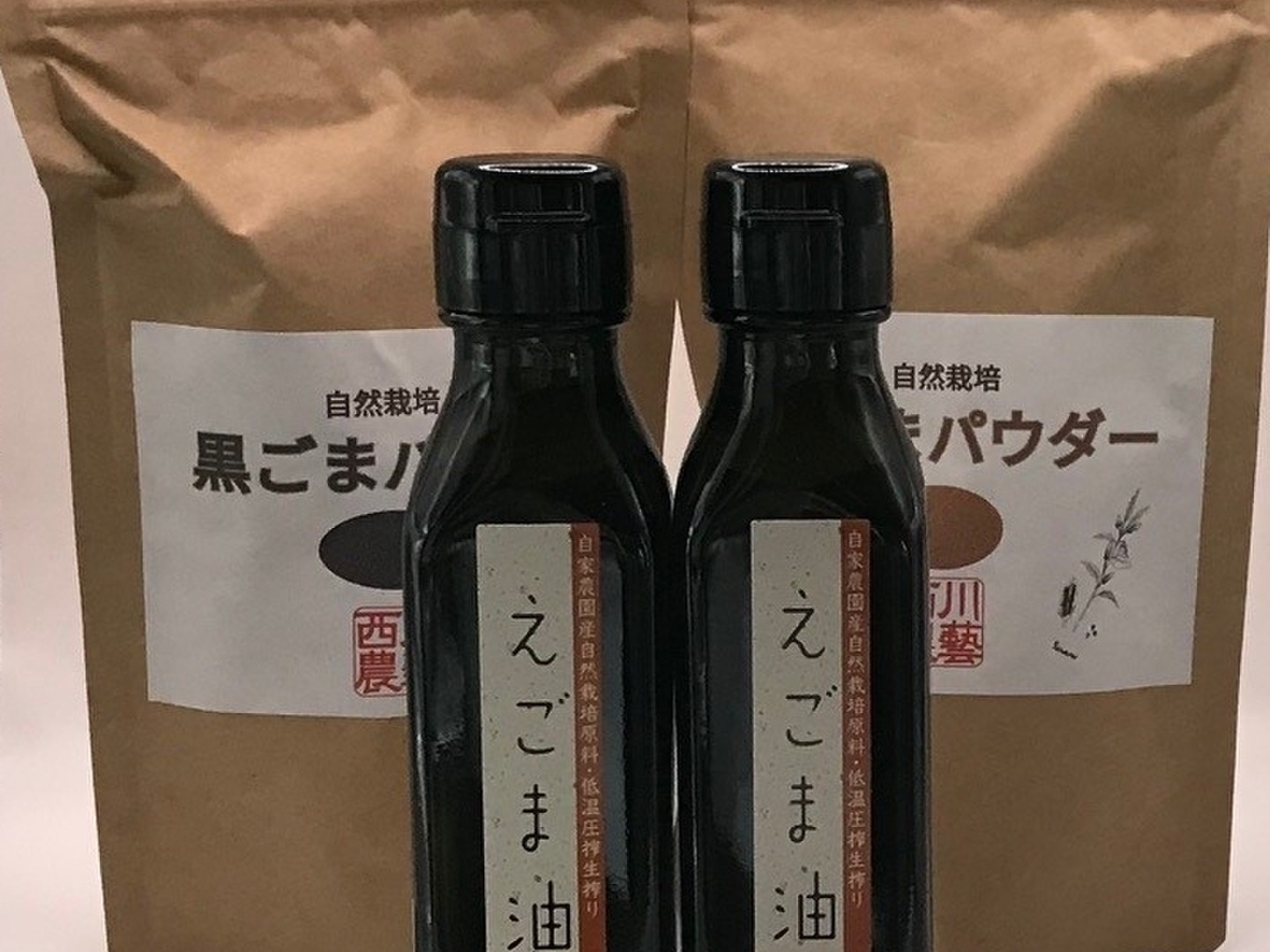 えごま油2本と黒と金のごまパウダーセット