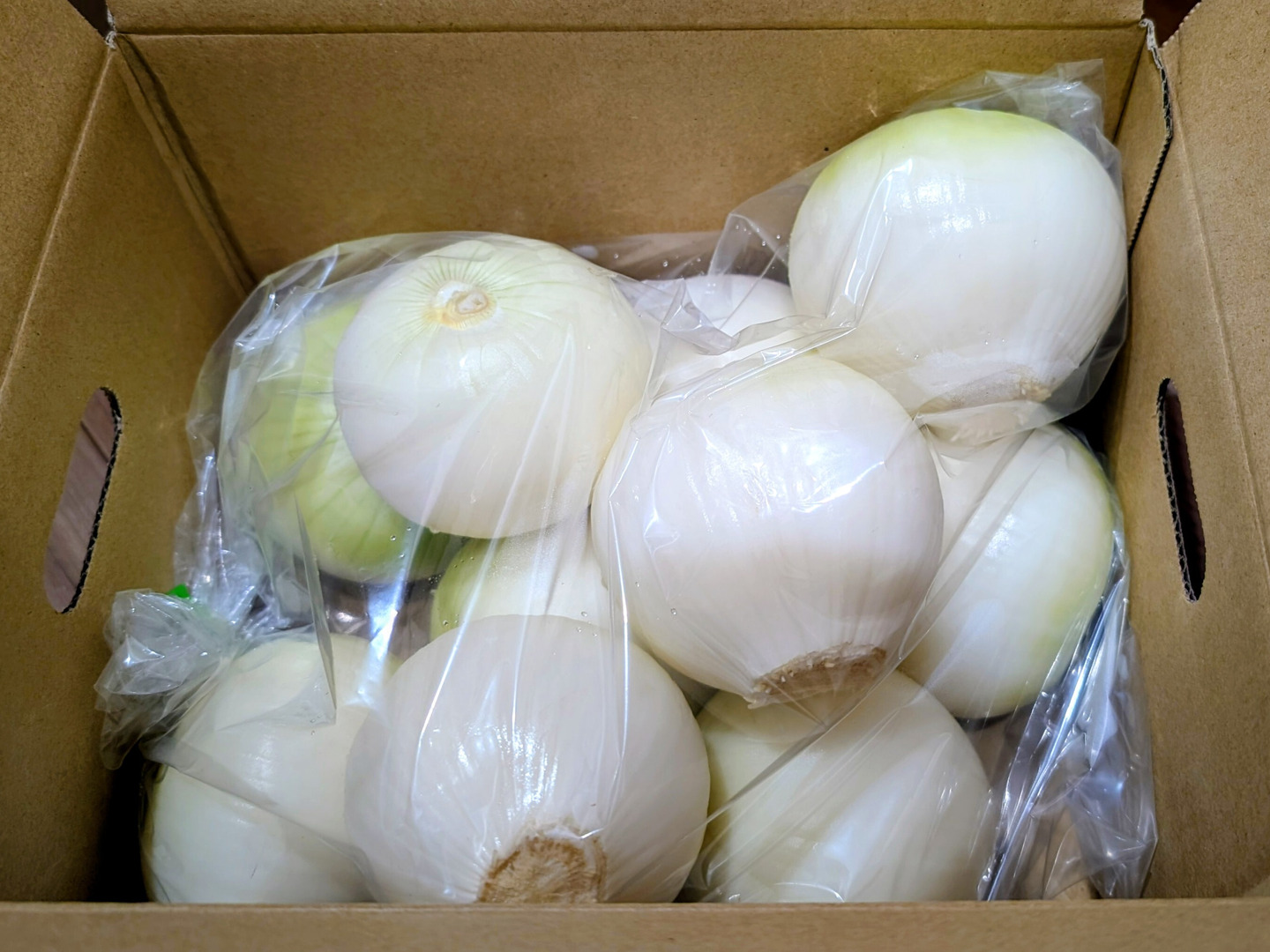 収穫時に傷の入ってしまった玉ねぎや分球品などを真っ白に剥いた商品となります。