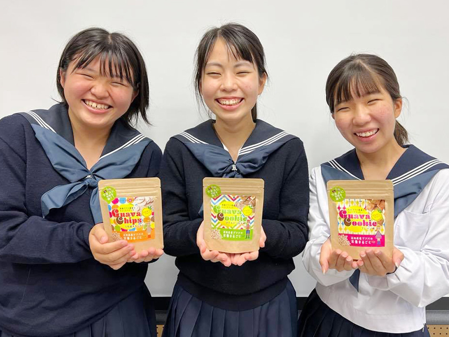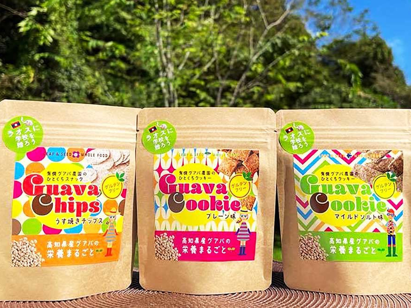 抽出したグアバのお茶と茶葉、これまで未利用だった種を配合した、高知県産グアバの栄養をまるごと味わえるひとくちチップスです。