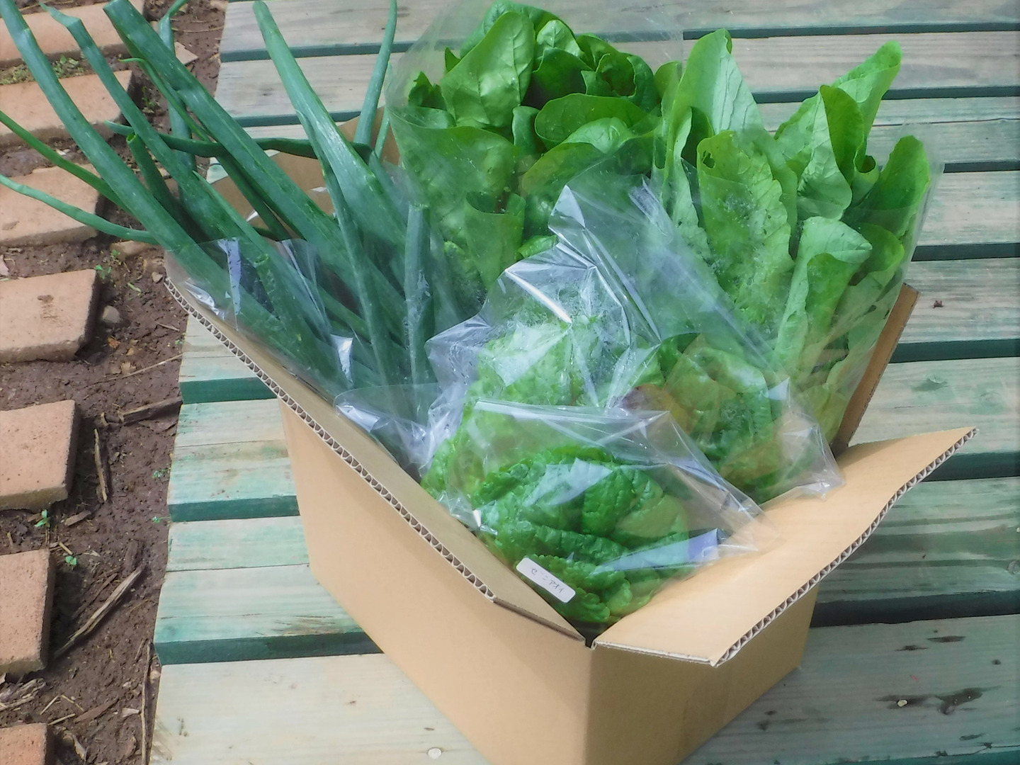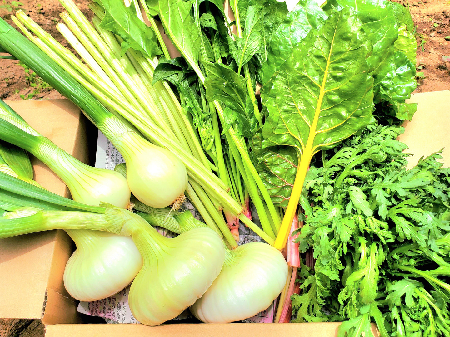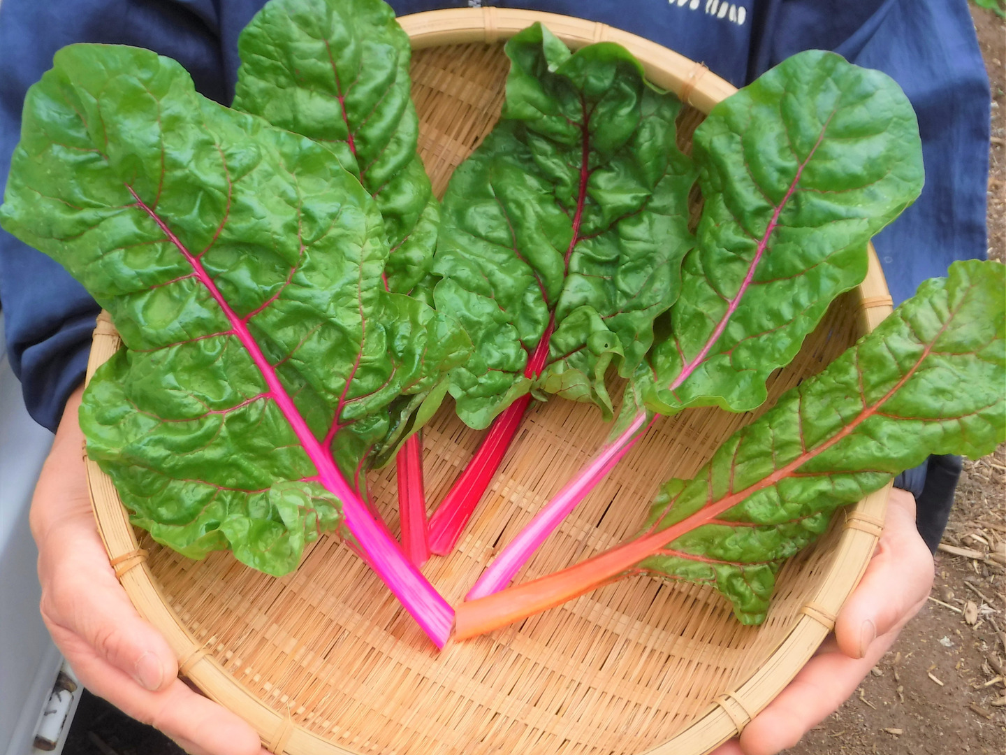葉付きサラダ玉ねぎ、春菊、スイスチャード、ゼニアオイとなっております