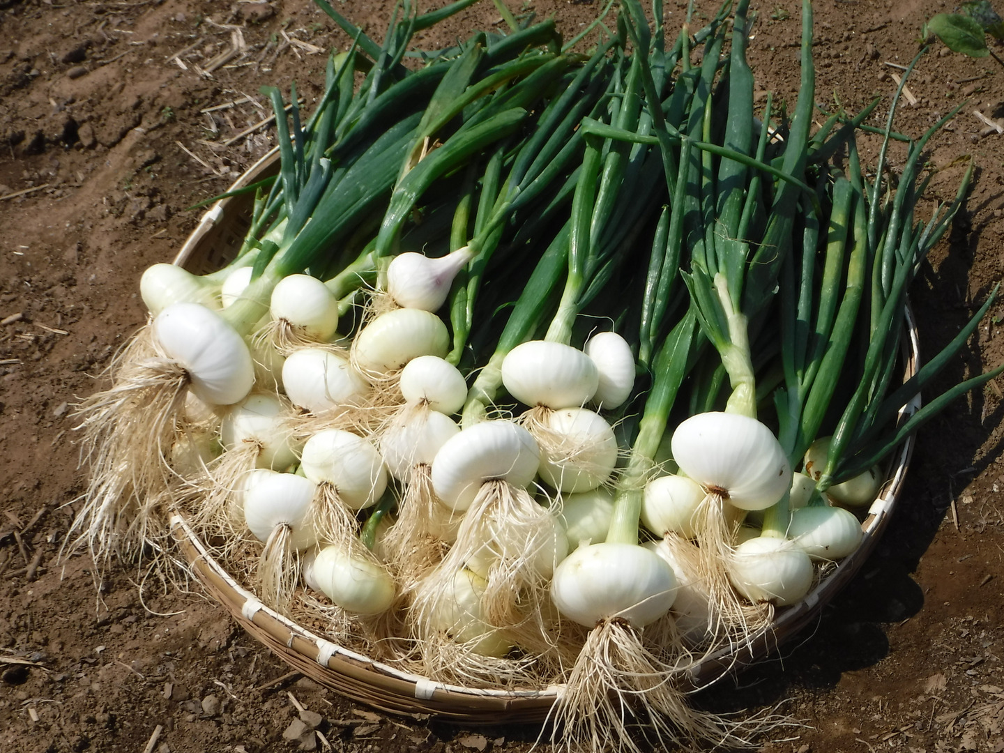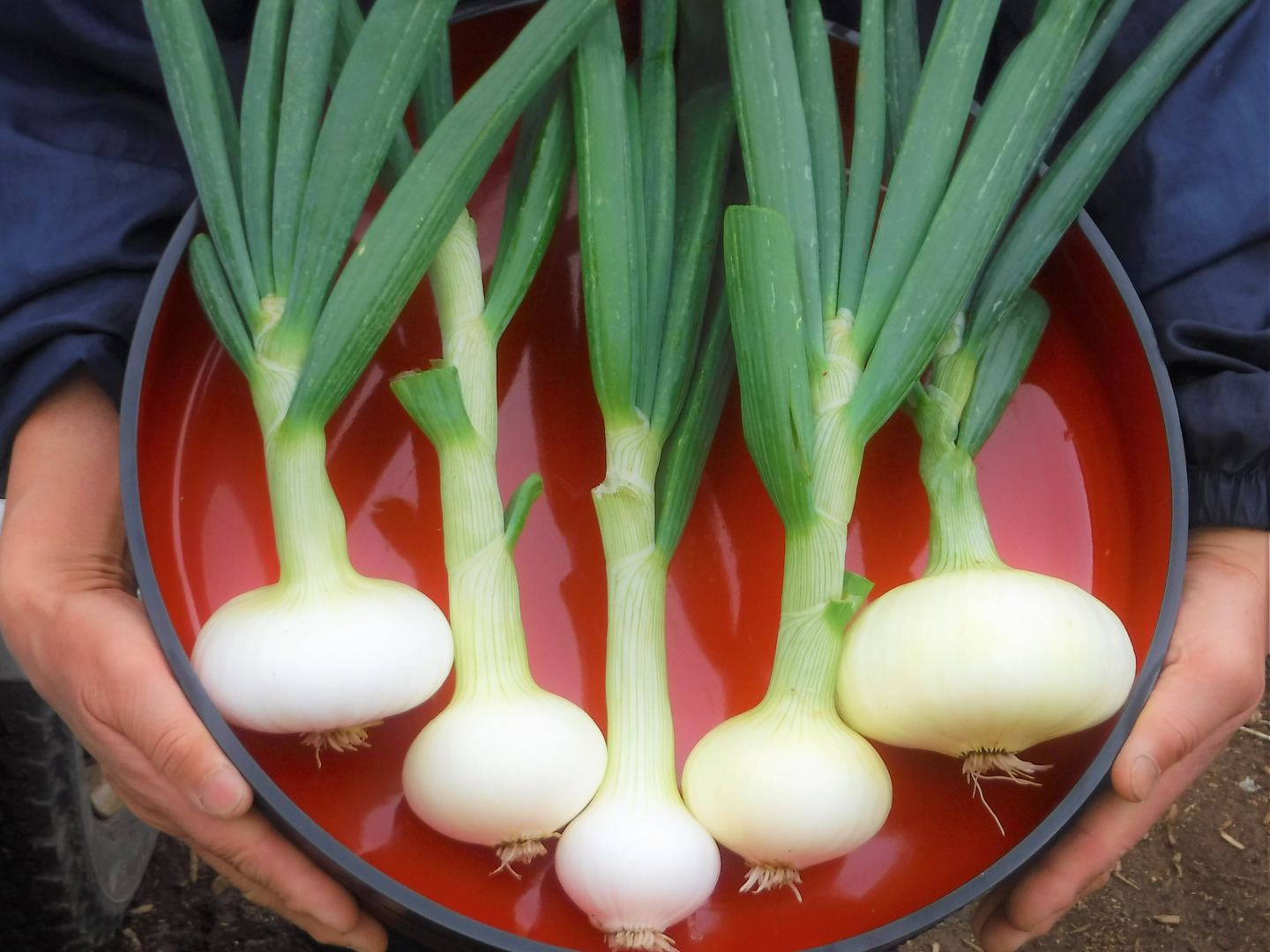 葉付き玉ねぎは葉の方は酢味噌和えやお味噌汁などの具、長ネギの代用品などにご利用ください。🧅