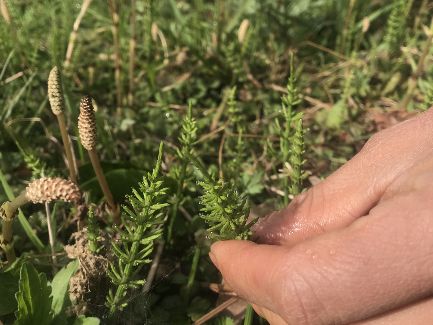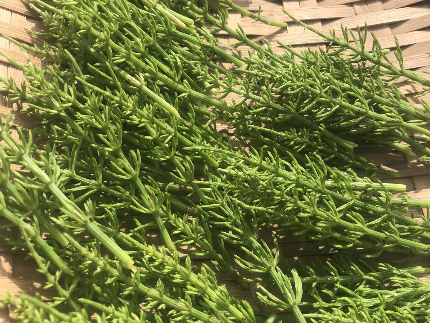 地域をあげて蛍を保護しているので、広範囲で美しい環境が守られている場所です。春一番つくしの後に4月のはじめに生えてくるスギナ。大きくなる前の若いものを短期間収穫。お茶にします。