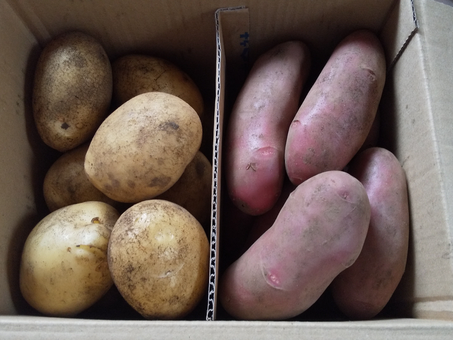 赤皮のシェリーは中は黄色で、煮崩れしにくくメークインのような食感でカレーやシチューなど煮食に適します。芽が出にくいので長持ちしますが、冷蔵保存すると甘みが増します。