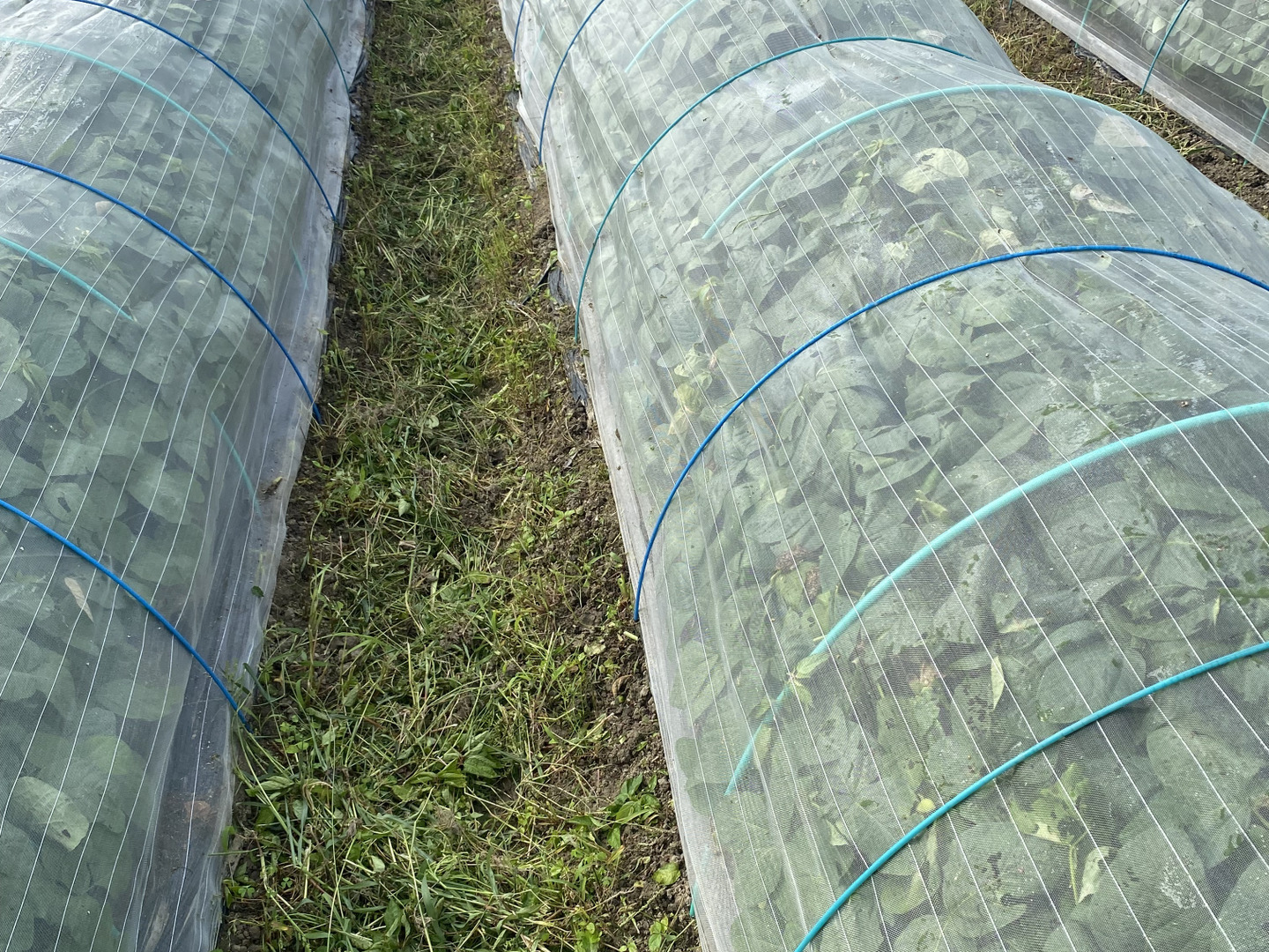 農薬不使用ですが、虫が苦手とする木酢液を定期的に散布し、防虫ネットで虫が枝豆に近づかないようにしています。
