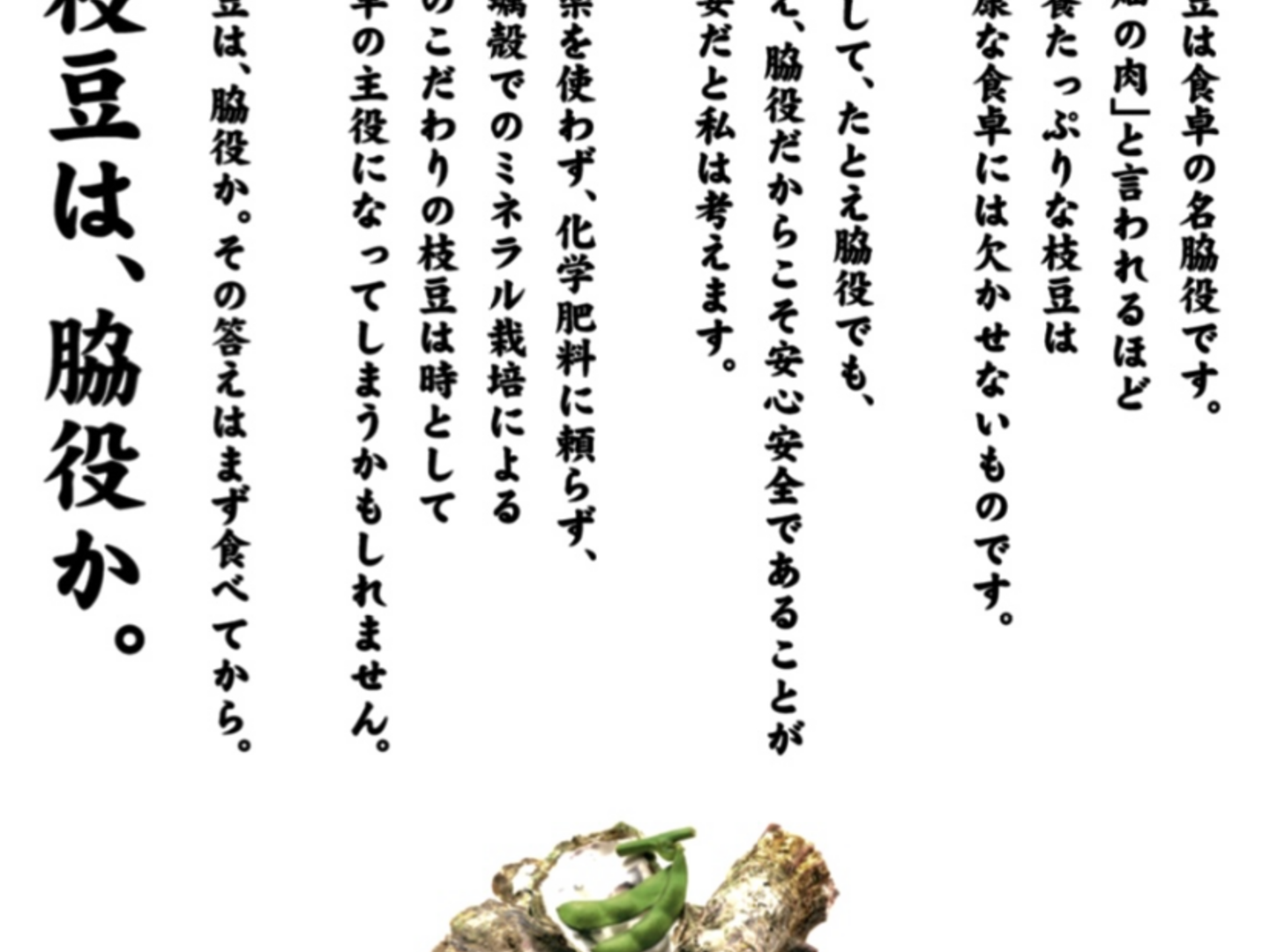化学肥料不使用ですが枝豆の旨さを引き出す為に最大限の努力をしています。