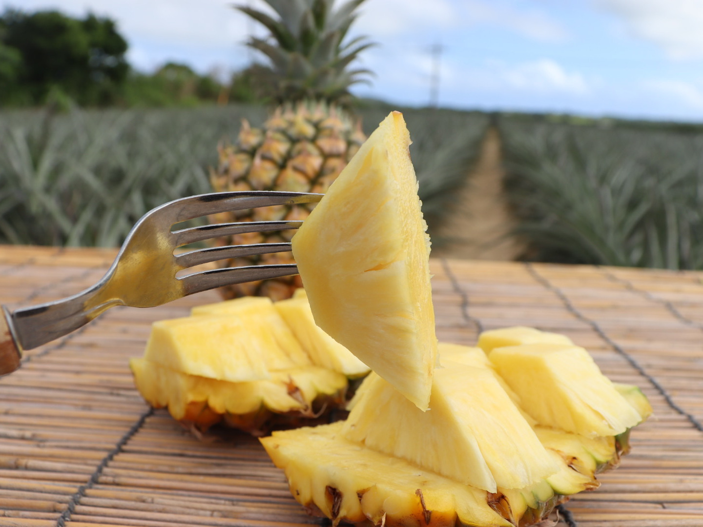 果肉の色は濃い黄色で、通常のパイナップルに比べ酸味が少なく、糖度が高いのも特徴で、とても甘く感じられます。