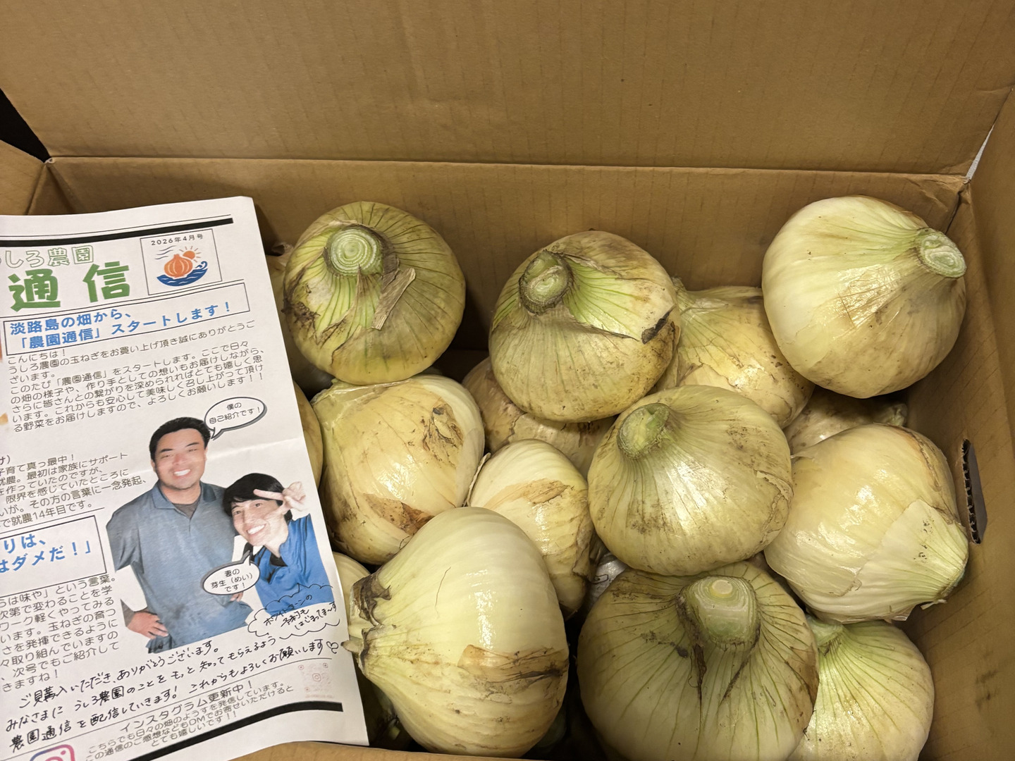 "うしろ農園は、竹肥料、魚肥料、ボカシ肥料などの有機肥料を時期により使用量を調整することで辛みを抑え、たまねぎの美味しさを引き出しました。