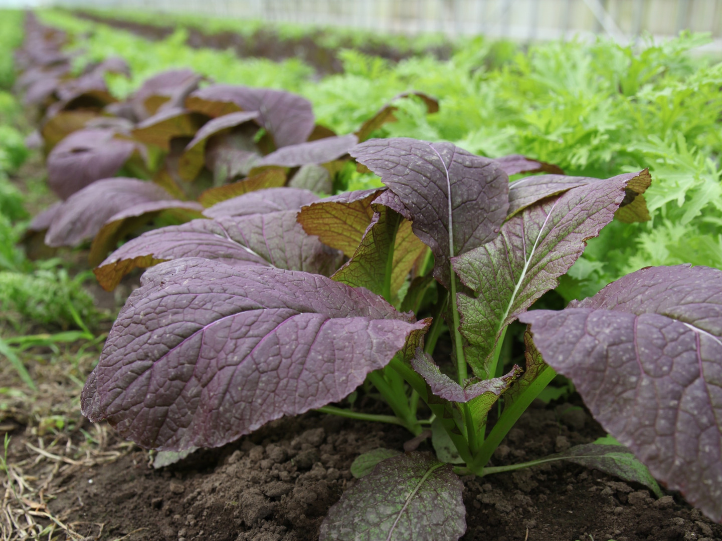 丸葉からし菜、ルッコラ、赤からし菜、青からし菜、