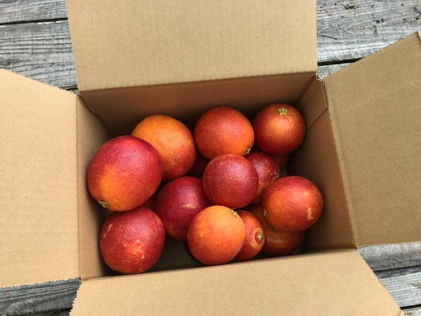 ブラッドオレンジ「モロ」約2.7kg。サイズ混合25個前後入り