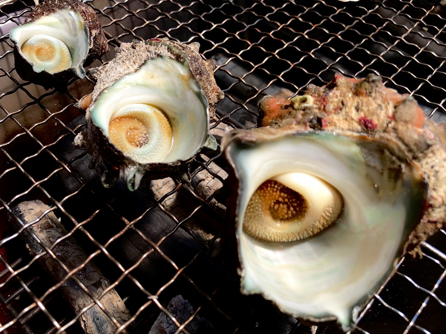 サザエは、お刺身やつぼ焼きとして大中小それぞれ違った食べ応えをお試し頂けます。