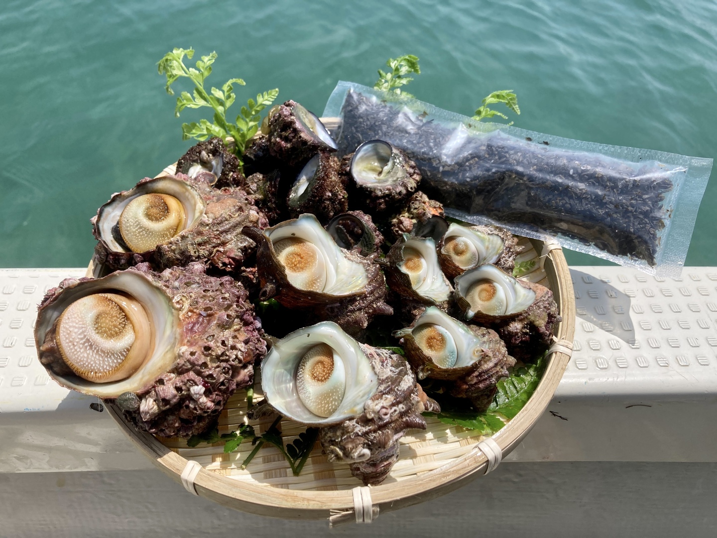 平良丸では海中の生簀で数日生かして砂を吐かせていますので、貝類は全て砂抜きの必要なく肝までお召し上がりいただけます。