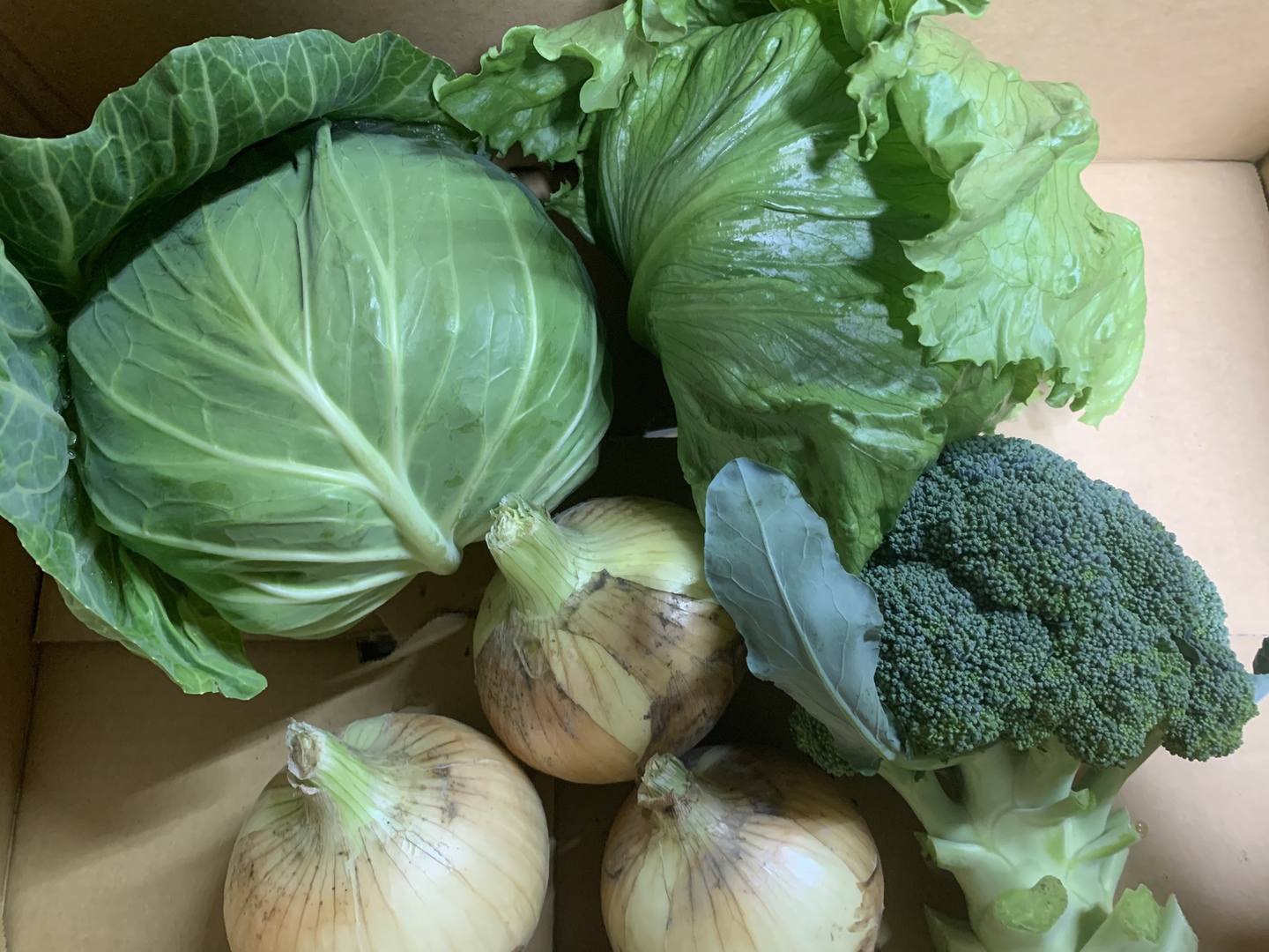 こちらの商品は新玉ねぎ3個とブロッコリーとキャベツとレタスのセット商品です。