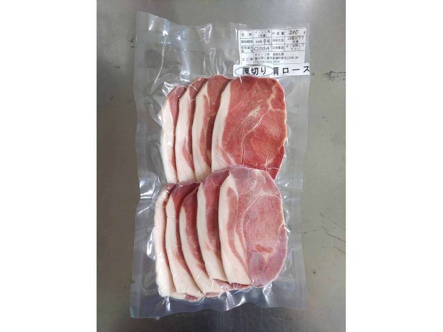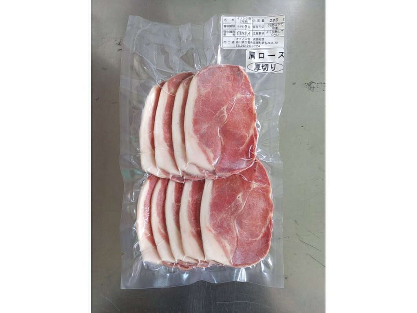 イノシシ 肩ロース 厚切りスライス 200gです。