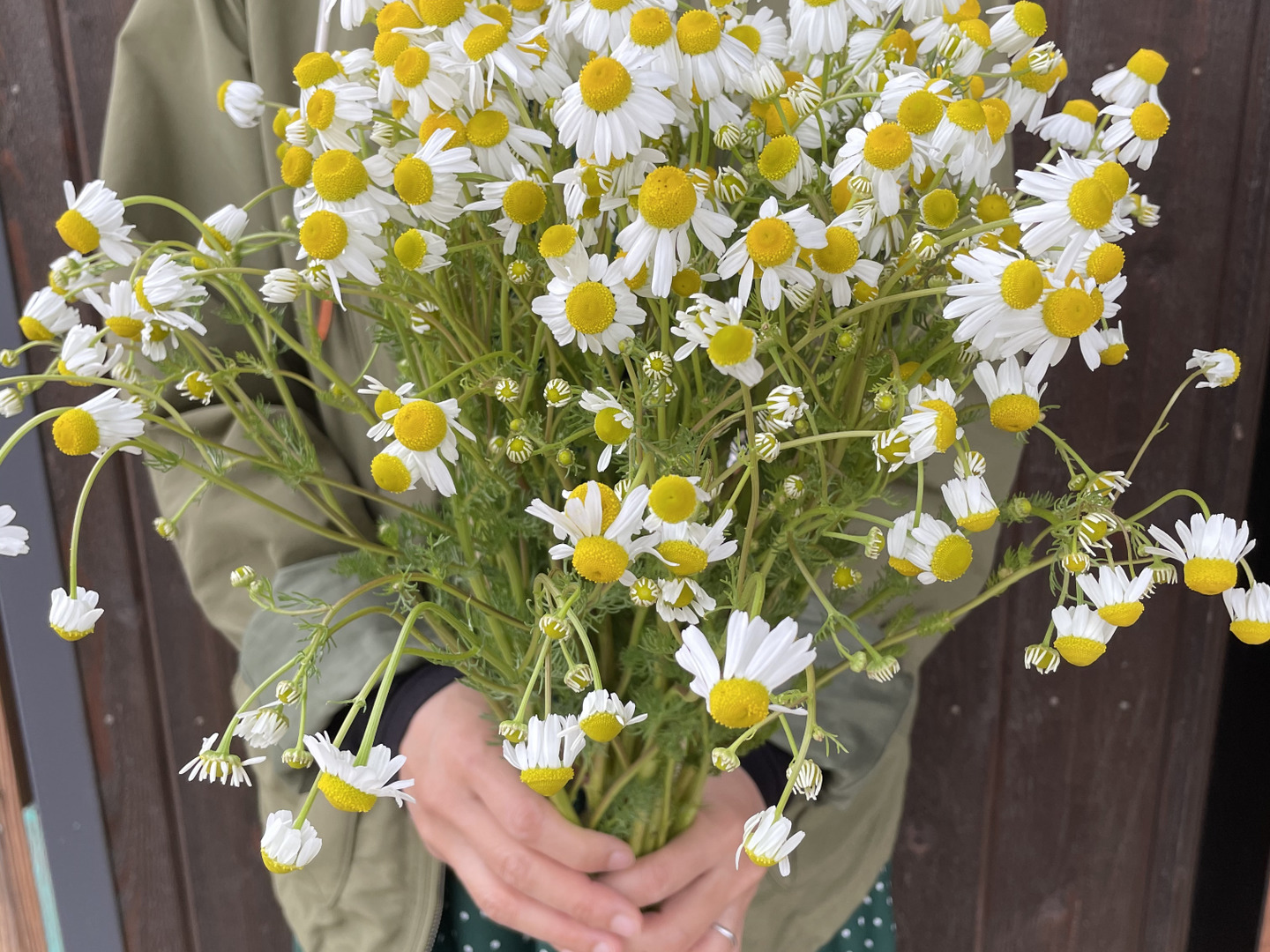 5月から開花時期を迎えるカモミール!オーガニックのフレッシュカモミールの花束を数量限定の予約販売をいたします。この時期にしか味わえない香りと味わいを是非お楽しみください!毎年大人気のフレッシュカモミールは、予定数量がなくなり次第終了となります。是非ご予約ください(^^)