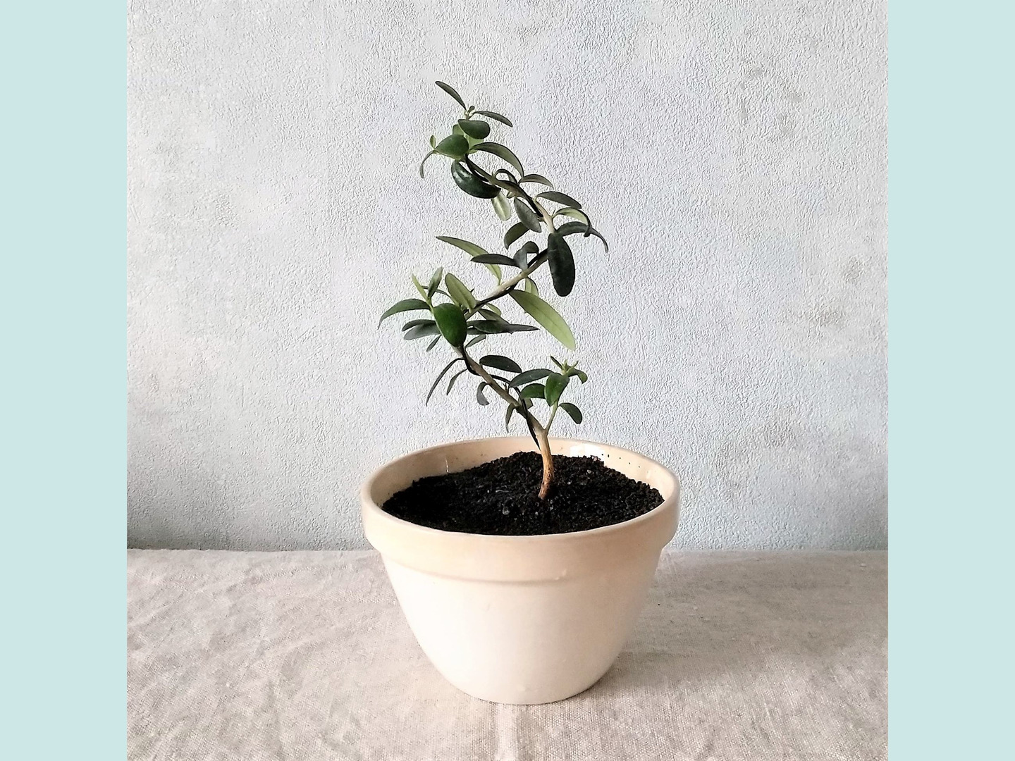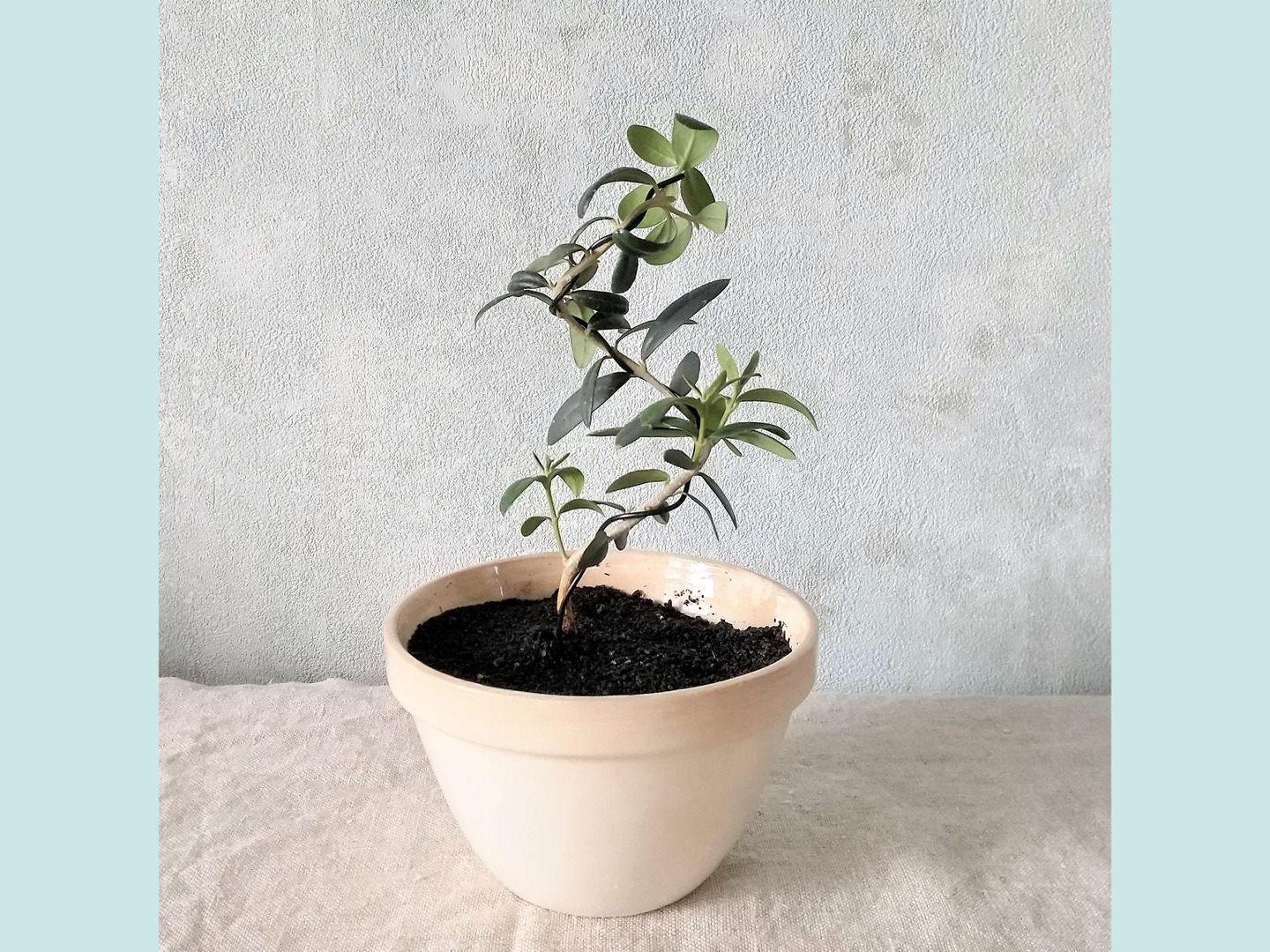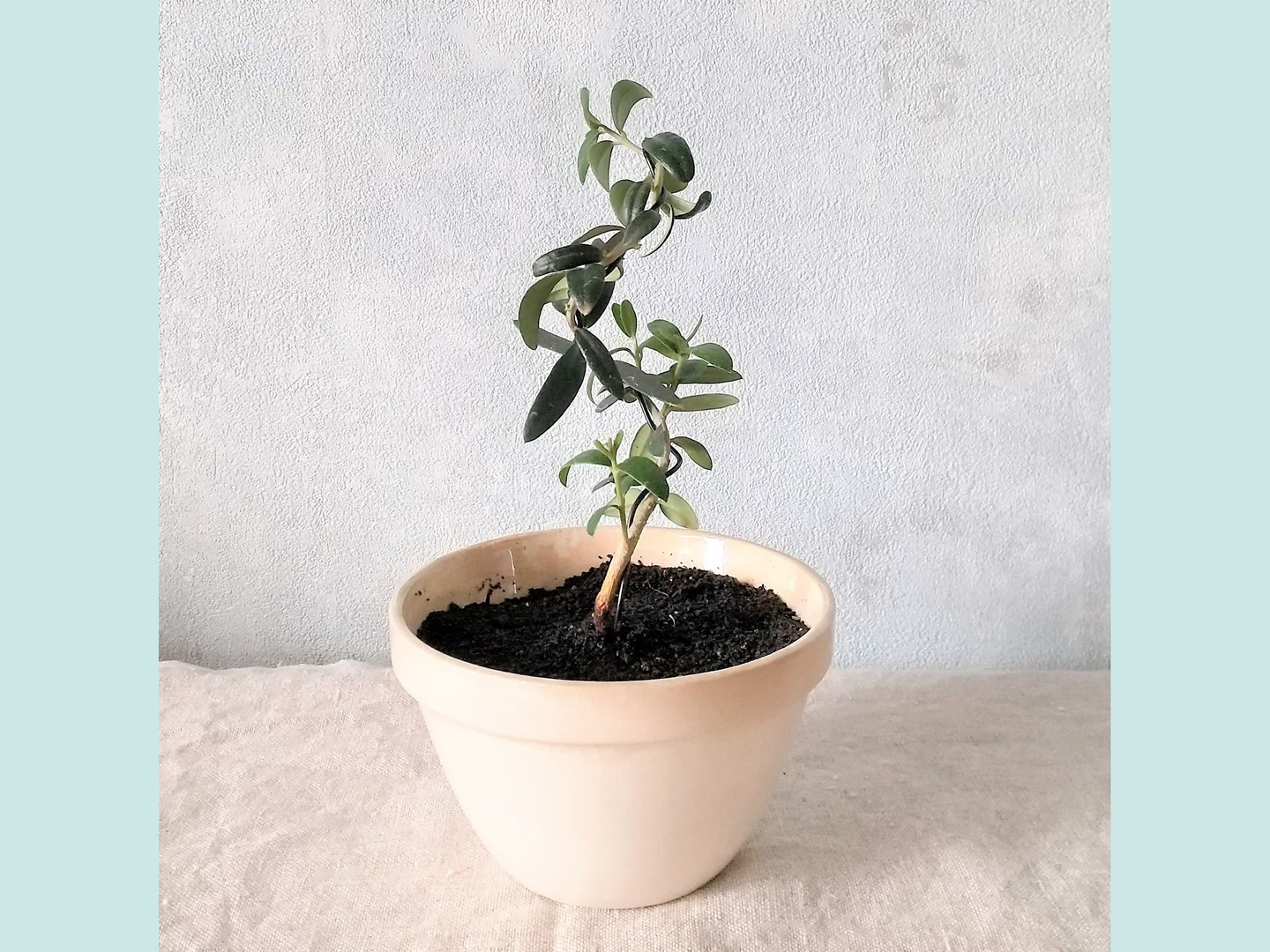 【父の日ギフトにも◎】イギリス ヴィンテージの器 種から育てたオリーブ盆栽(PS194)
