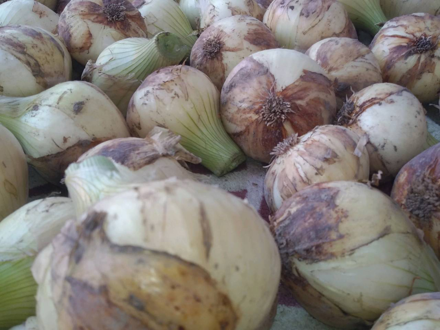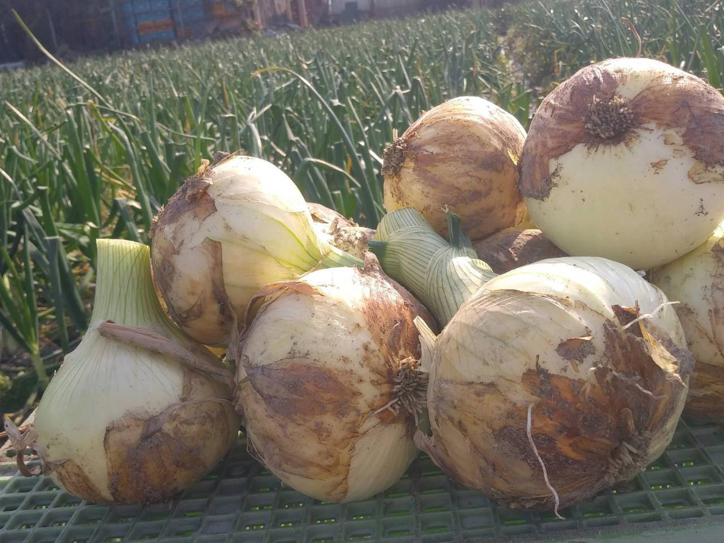 収穫したばかりの新玉ねぎは