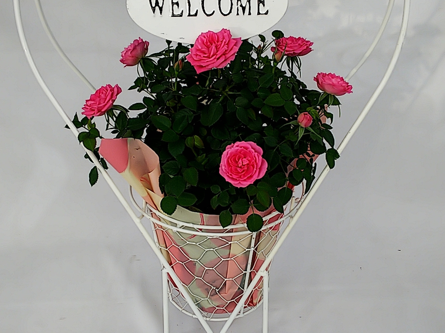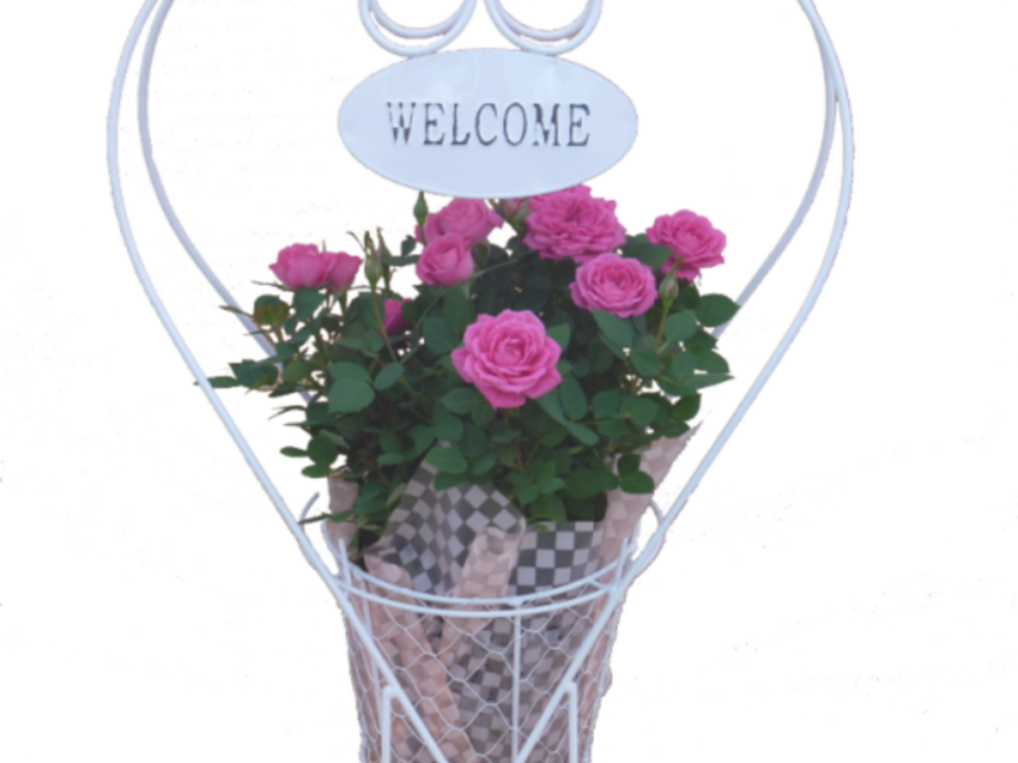 ハート形のアイアンの中に、中輪形のコルダーナローズ1色~2色が入ったとても可愛らしいバスケットです。