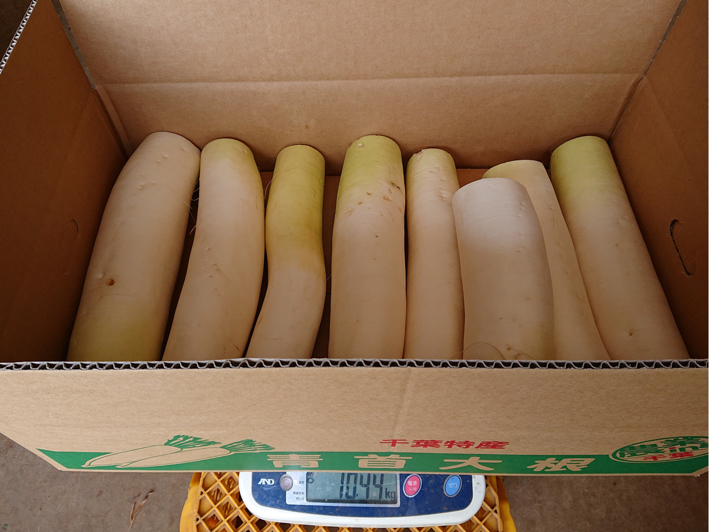 首と尾を切り落とし、根長約20cm以上の大根の詰め合わせです。