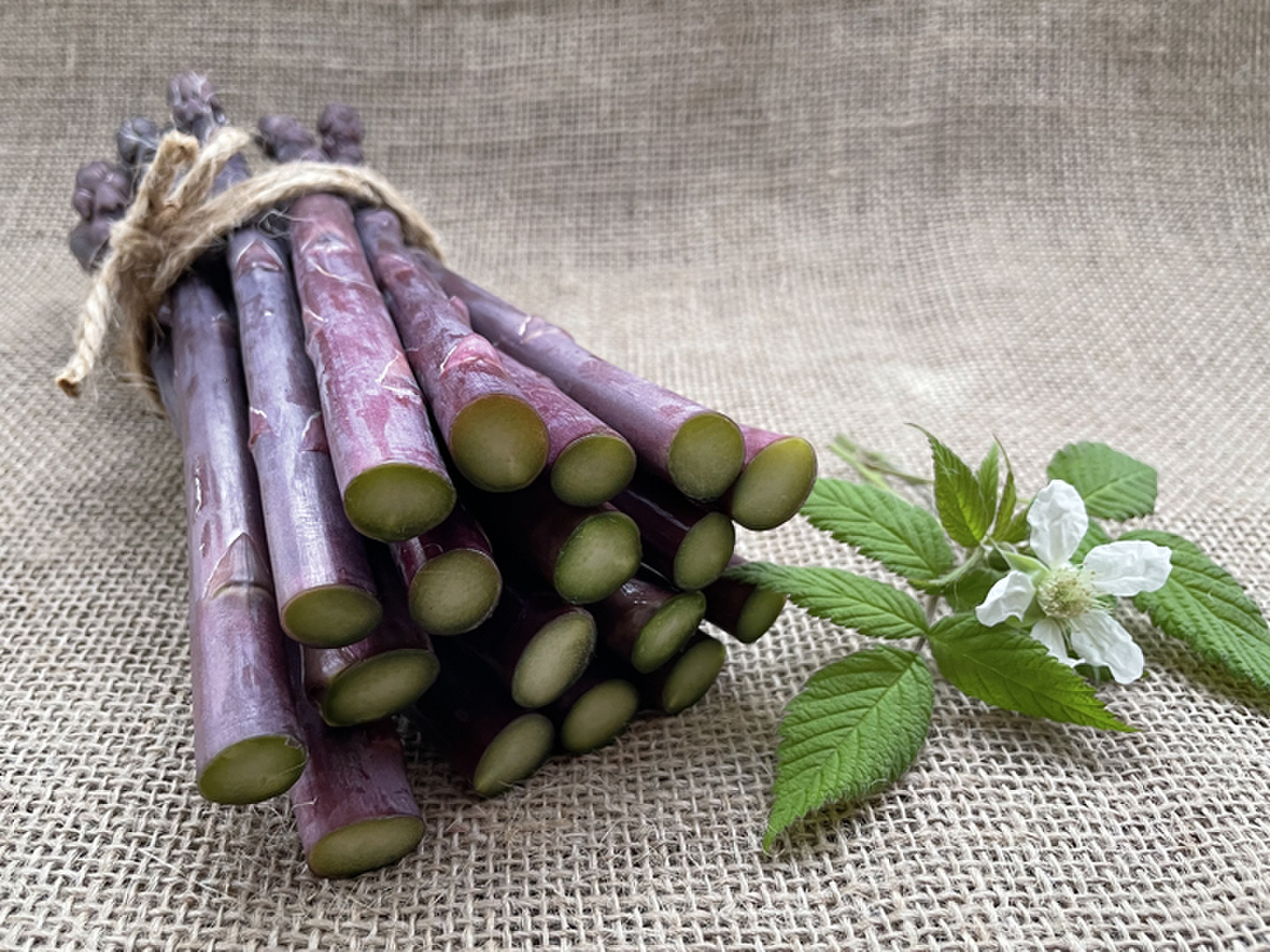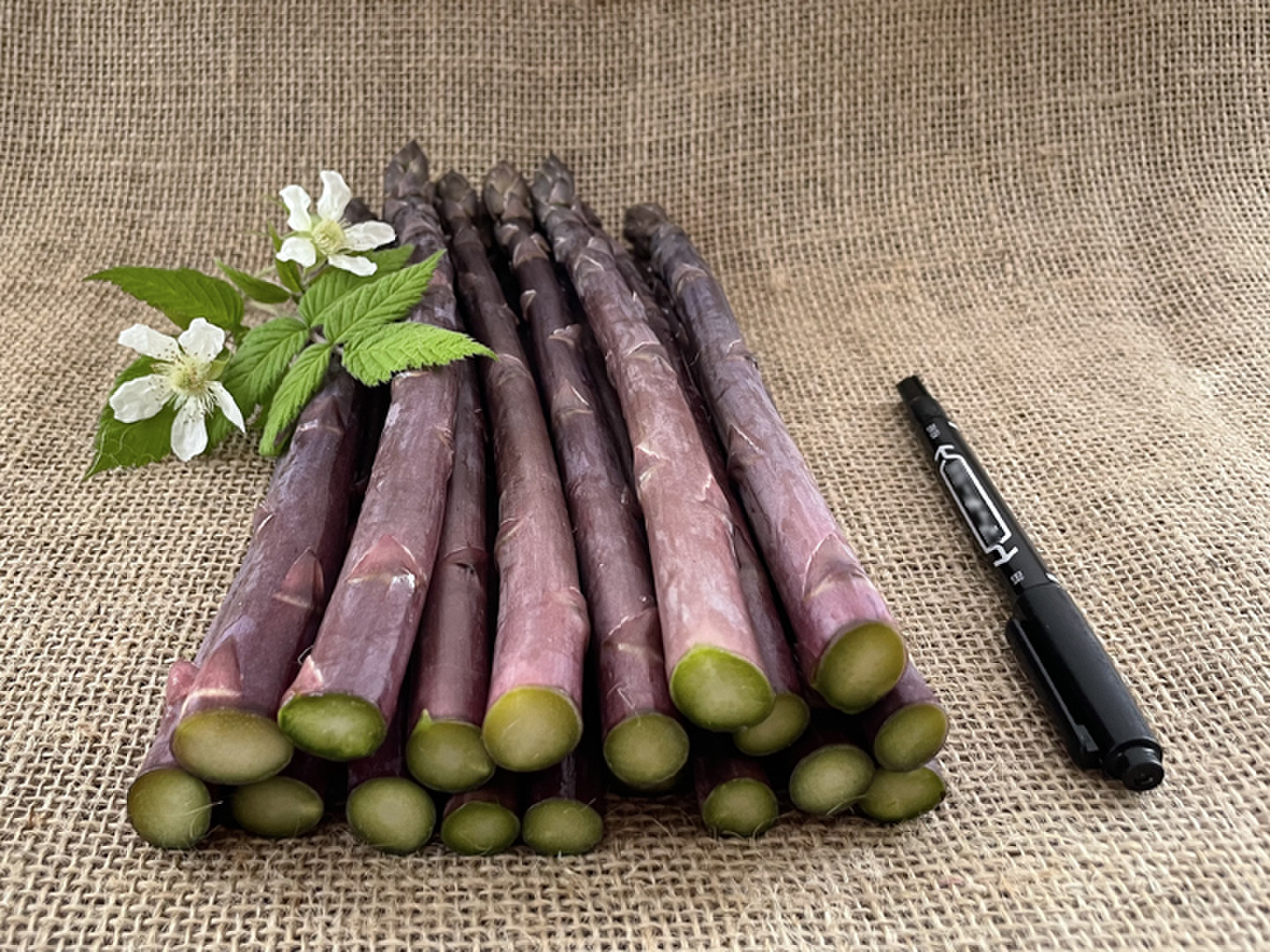 パープルアスパラガスは、グリーンよりも柔らかく甘みが多いです。