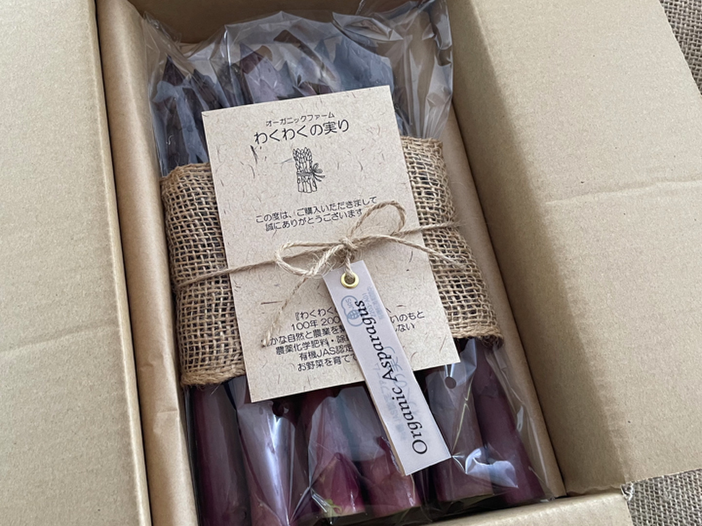 有機JAS認証オーガニック栽培された希少な紫アスパラガス。