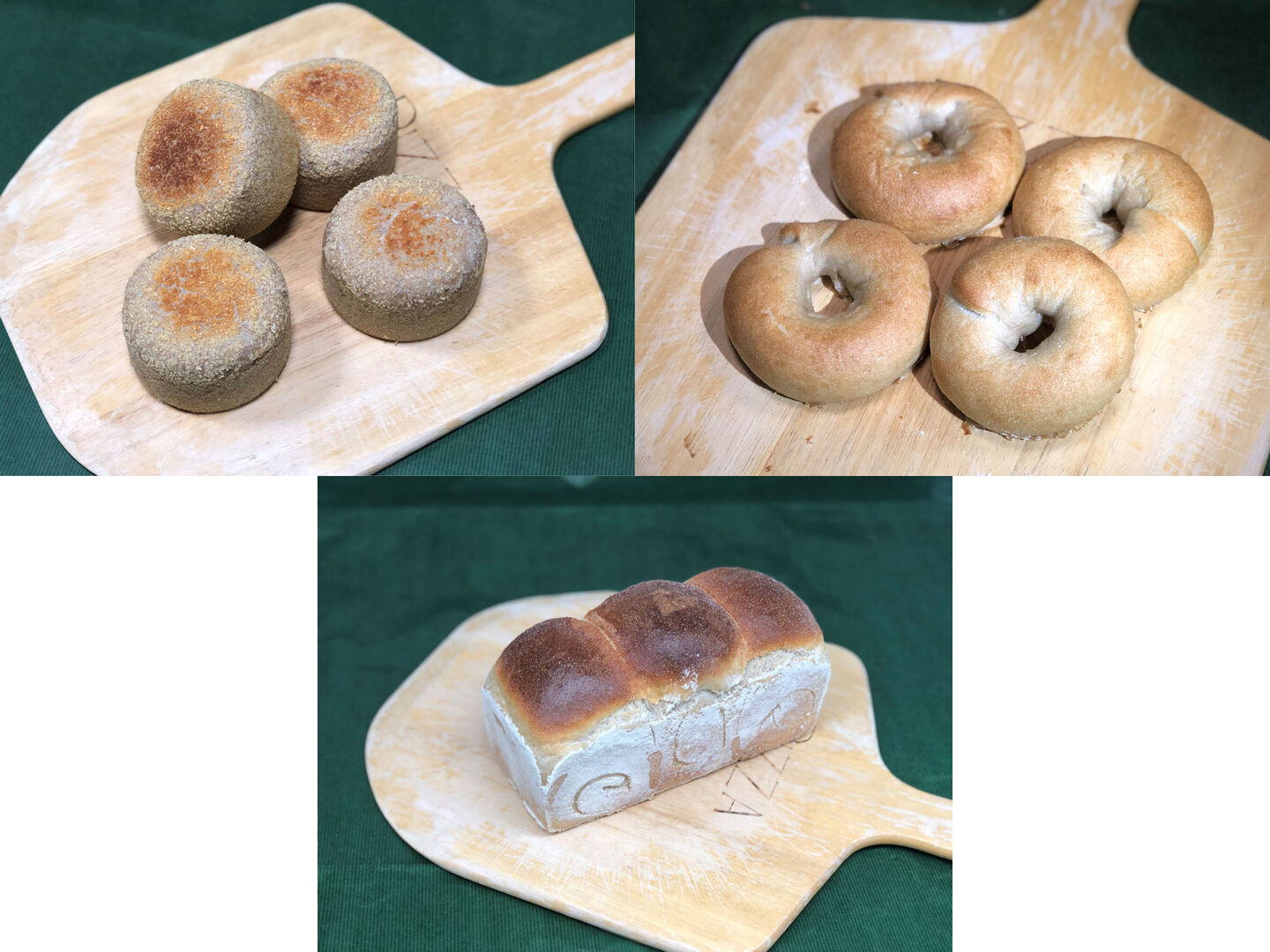 内容 有機JAS認証のイングリッシュマッフィン4個+ベーグル4個+食パンのセットです。