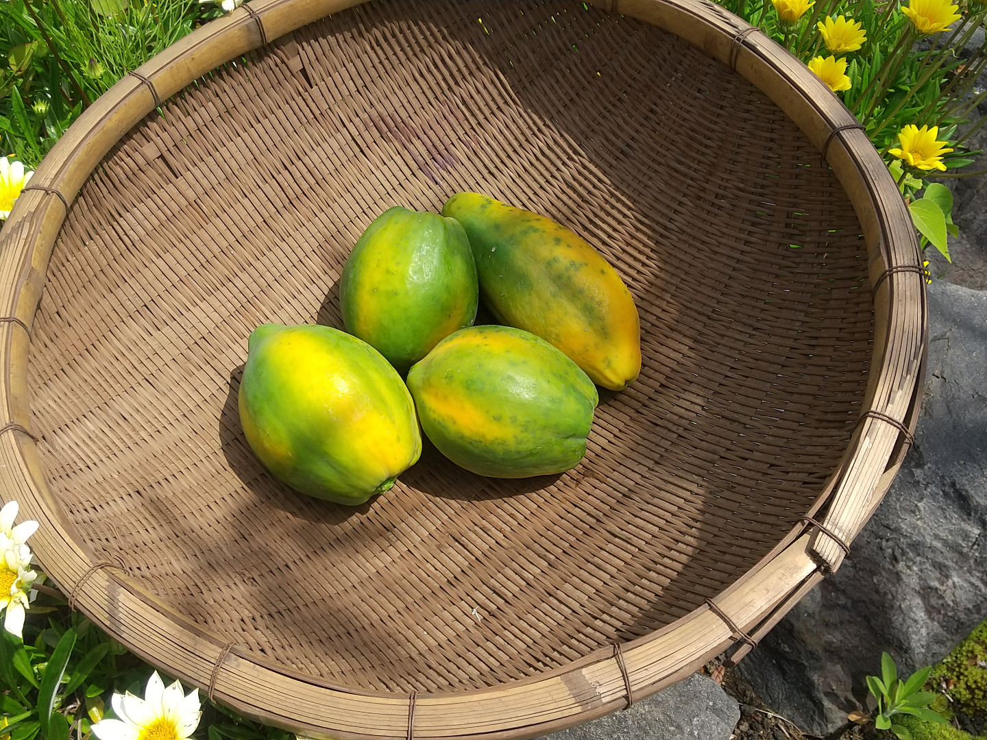 気温が低いのでフルーツとして熟しきらない半熟パパイヤを訳ありB品価格で提供❗