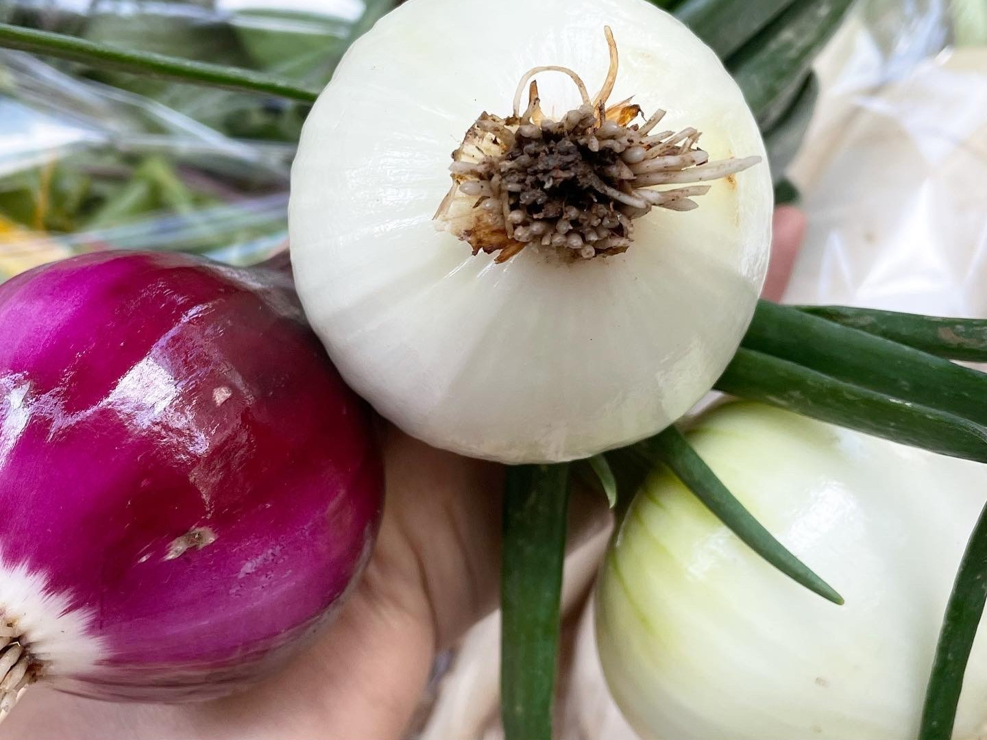 ・玉ねぎ3個(白、紫)