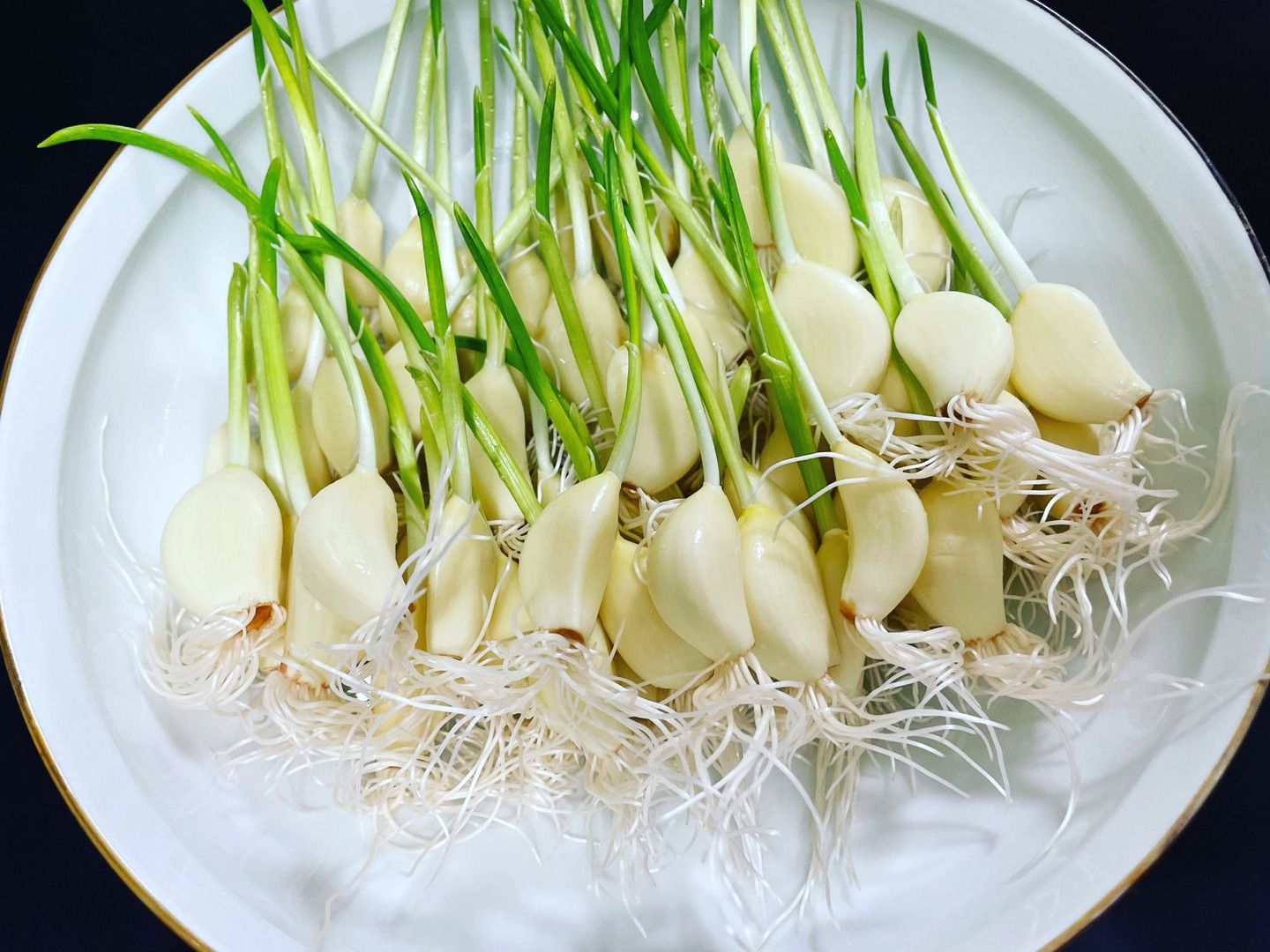 ニンニクを発芽させ、収穫してすぐ乾燥させました。