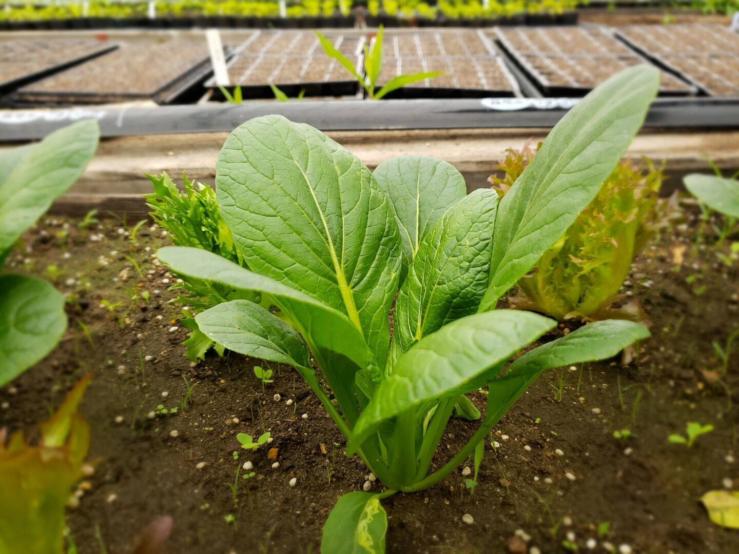 農薬不使用いろいろセット リーフレタス、虫食い小松菜、にんにくの芽、ネギなど