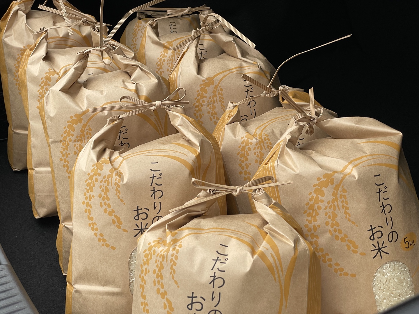 お米を入れている袋は環境保護やゴミを増やさない。という観点から、2回目使用の再利用袋を使用させていただいております。そのため袋には福島県や青森県などの表記が入ります(^^)