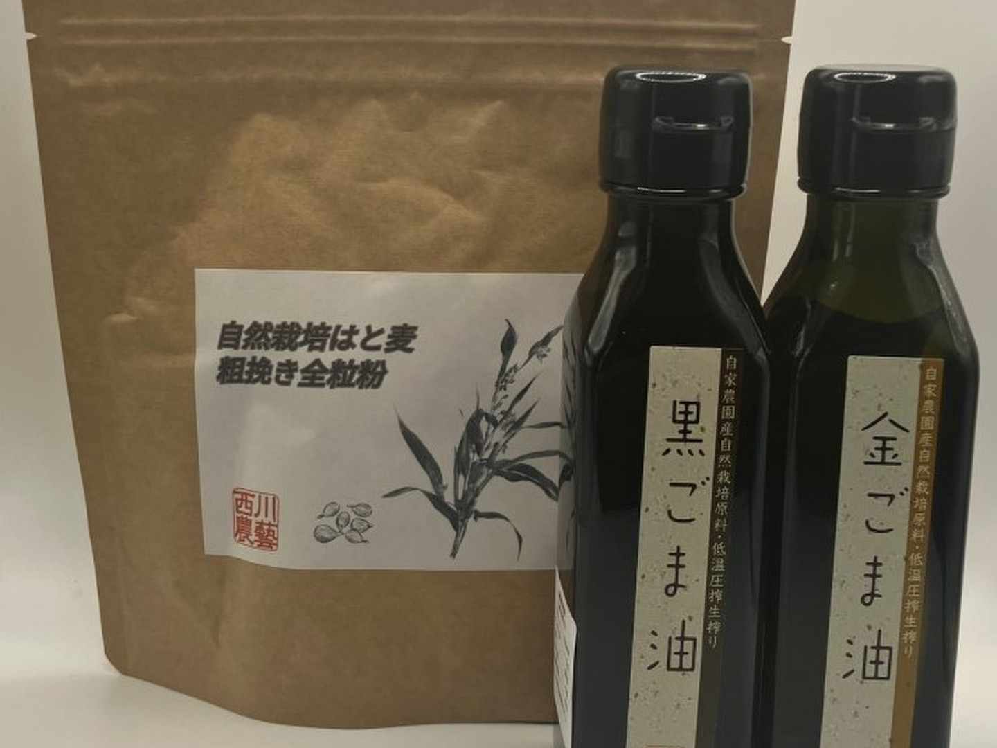 金と黒のごま油とはと麦粗挽き全粒粉のセット