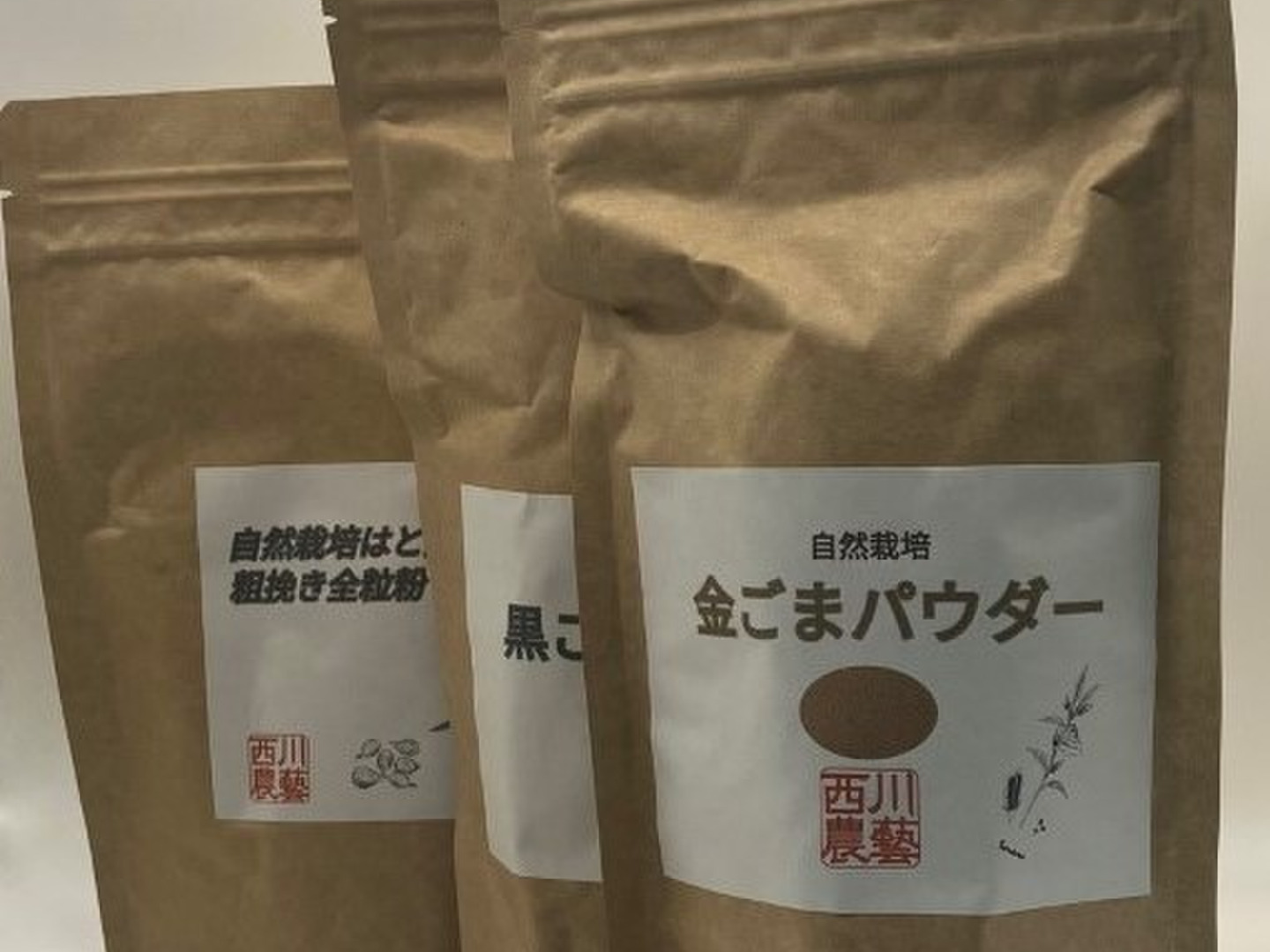 金と黒のごまパウダーとはと麦粗挽き全粒粉のセット