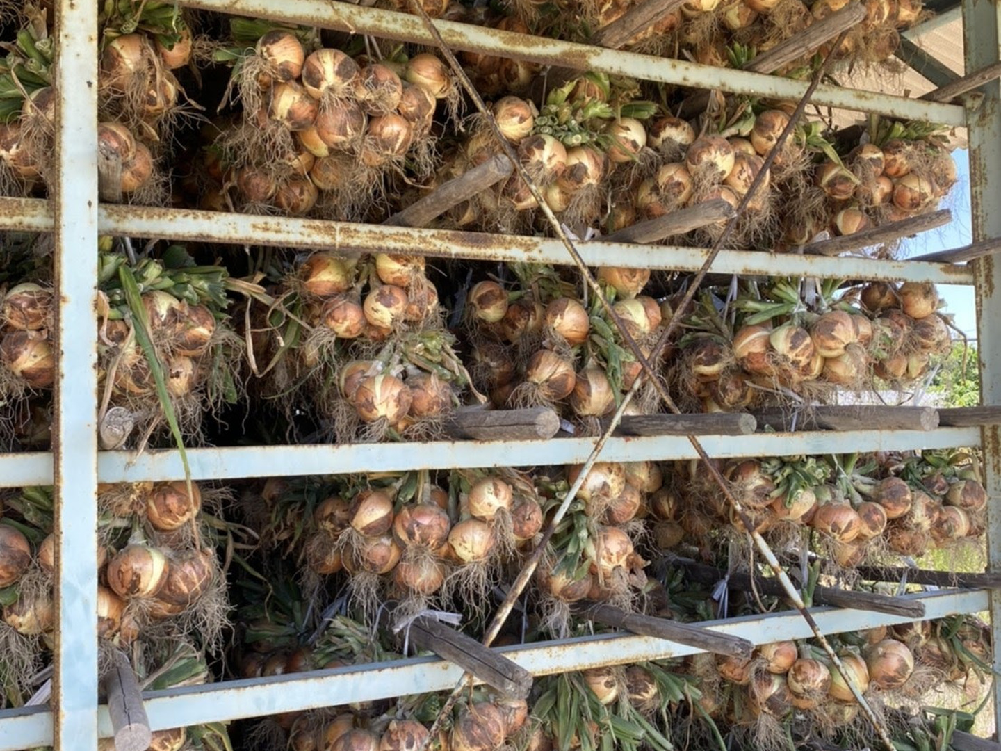 淡路島の玉ねぎは、6月に収穫した完熟玉ねぎを昔ながらの手法で約1ヶ月以上玉ねぎ小屋に吊るして島風に当てる風習があります。